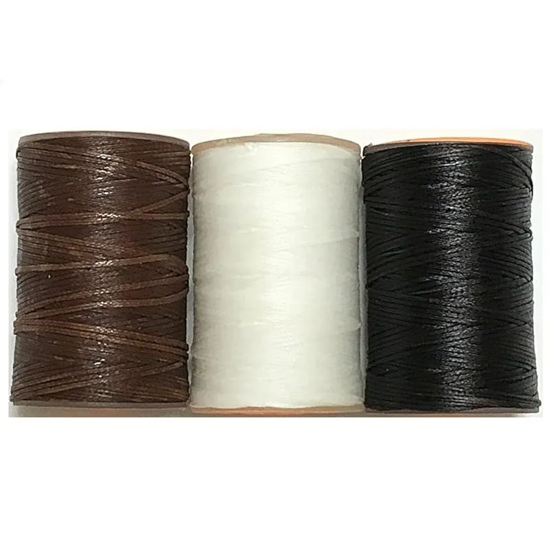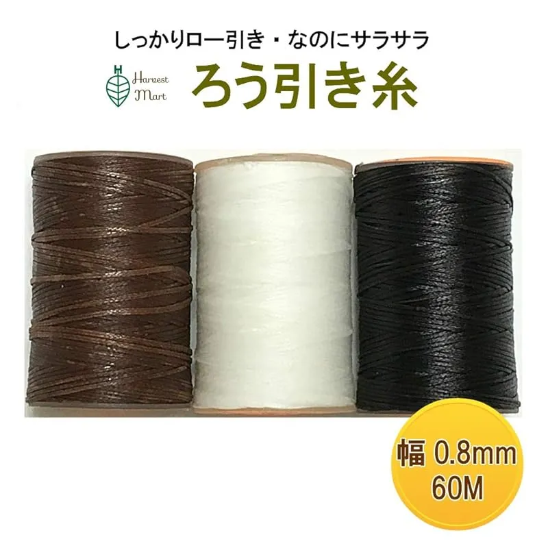 【商品説明】 厚すぎず薄すぎないロウを施した縫い糸です。 幅0.8mm。長さ:60m の糸を3個セット。 ポリエステル繊維。 蝋引きされた強靭な糸は、レザークラフトだけでなく、アクセサリー、マクラメ編み、パワーストーンブレスなど色々なクラフトにお使いいただけます。
