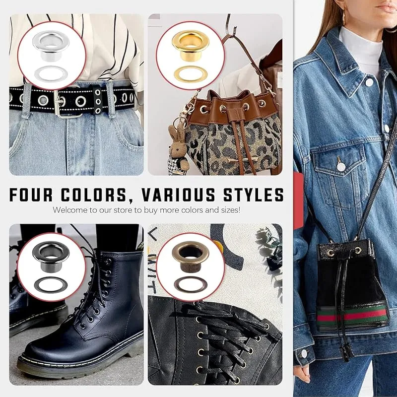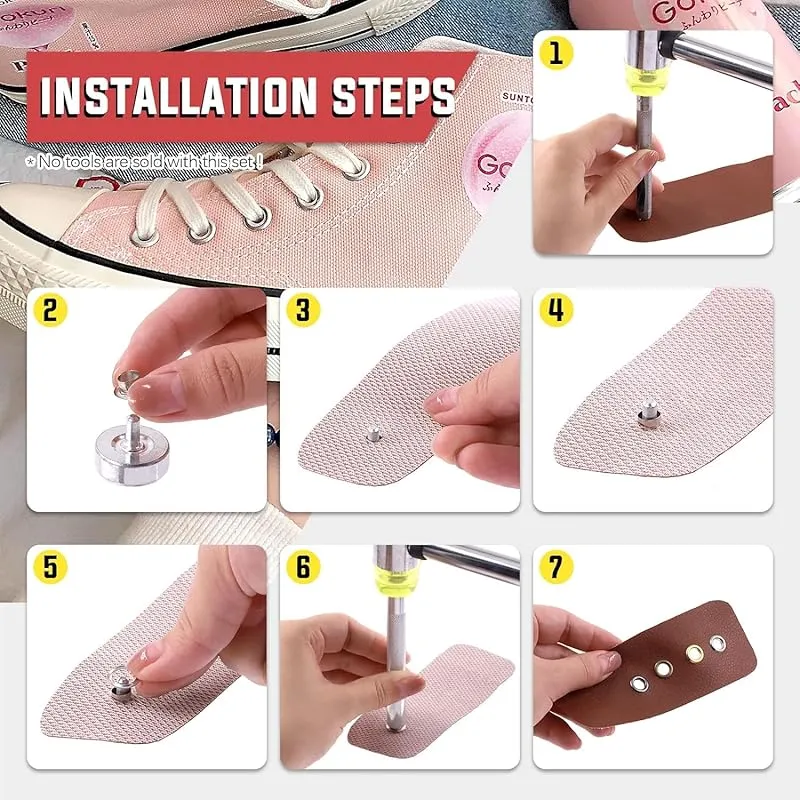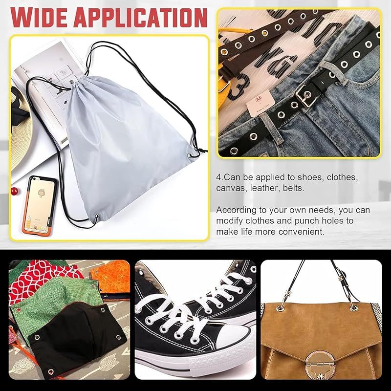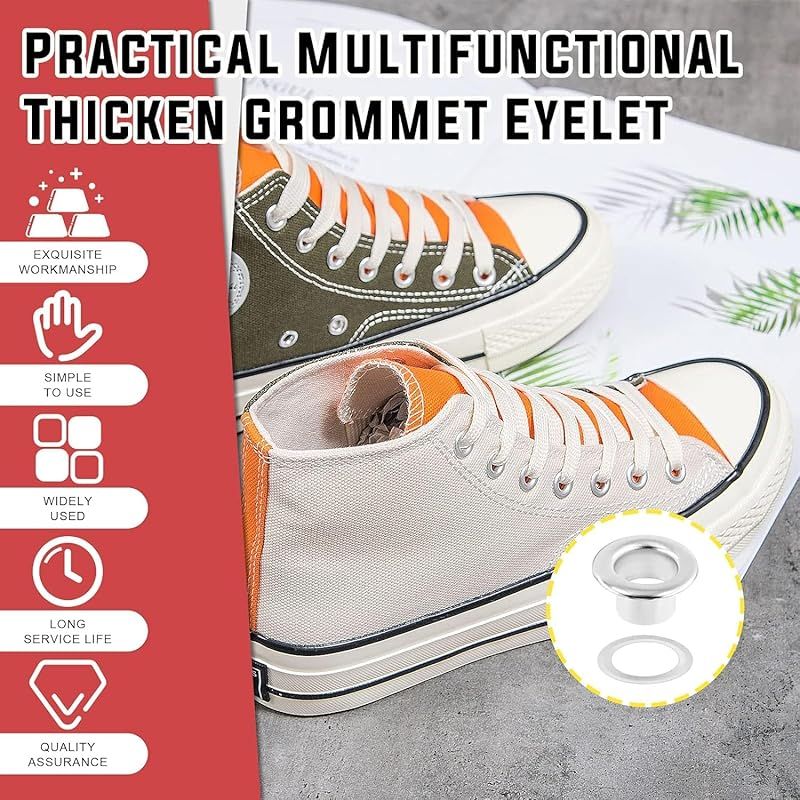 【幅広い用途】使いやすいグロメットキットは、靴、衣類、靴ひも、DIYクラフトプロジェクト、キャンバス、防水シート、テント、日よけ、レザークラフト、工芸品などに装飾を加えるのに適しています。