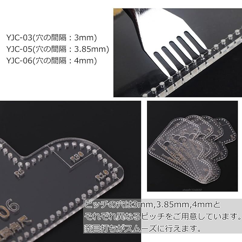 【菱目打ち】ピッチの穴は3mm,3.85mm,4mmとそれぞれ異なるピッチをご用意しています。菱目打ちがスムーズに行えます。