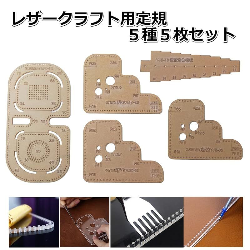 【新品】 Copeflap r定規 レザークラフト r切り出し 型紙 アクリル カット 菱目打ち 曲線 工具 (5点セット) 0