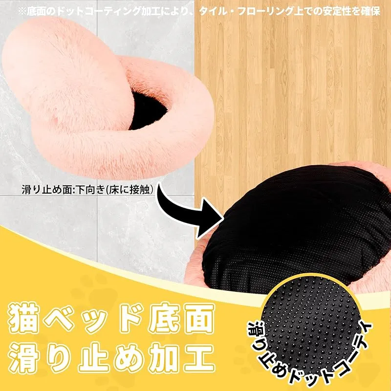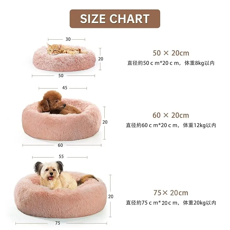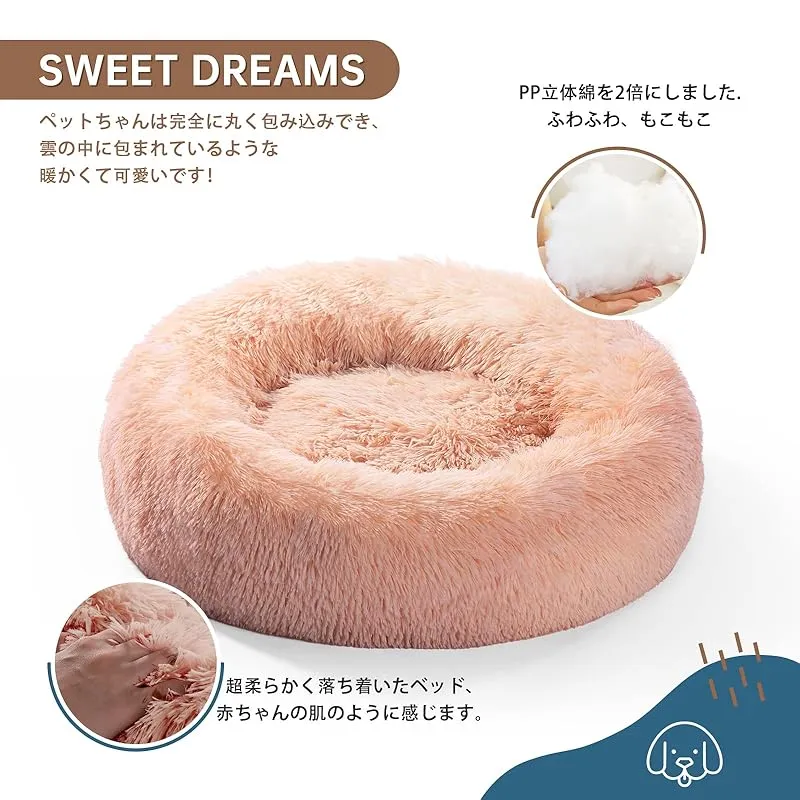 犬 ベッド 猫 クッション グッズ - ラウンド型 もふもふ 丸型 OYANTEN ドーナツふわふわ もこもこ ぐっすり眠る 洗える 通年 コーギー/柴犬/中型犬用品 (75cm, ピンク) 0