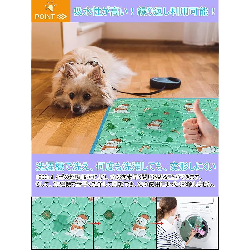 【ブルー縁ガイド!】 ペットマット 小型~中型犬・猫用トイレマット 四重構造で漏れ防止/滑り止め/超吸収 丸ごと洗える 繰り返し使える 速乾/制菌 介護(グリーン70x50cm 2枚 スノーマン柄 製造元:TiTiSNUGY 商品番号:PPP-7050-Snowman*2 商品内容:L:70x50cm(2枚) 色:グリーン スノーマン柄