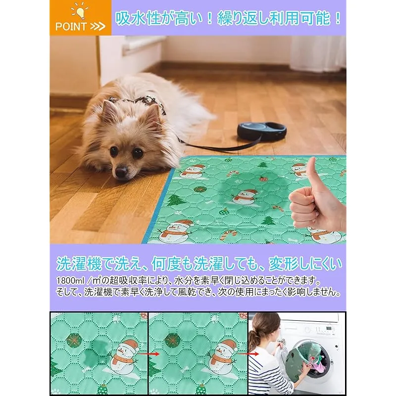 【繰り返し利用可能】一回使い捨てのおしっこシートよりもっと経済的で環境にやさしく。このペット用おしっこマットは柔らかく耐用性がよく、お手入れも簡単で、洗濯機に入れて洗えます。何度も洗濯しても、壊しにくい。速乾性がよく、繰り返し使用できます。折り畳み可能なので収納も便利です。(柔軟剤、および漂白剤の使用はお控えください) ??
