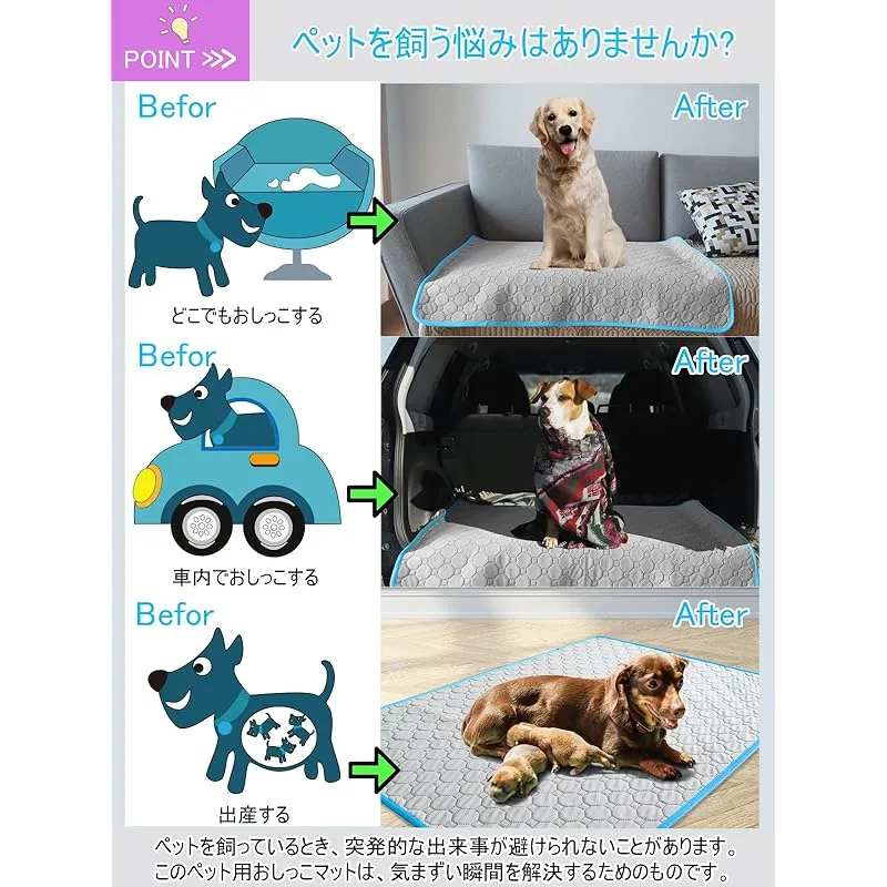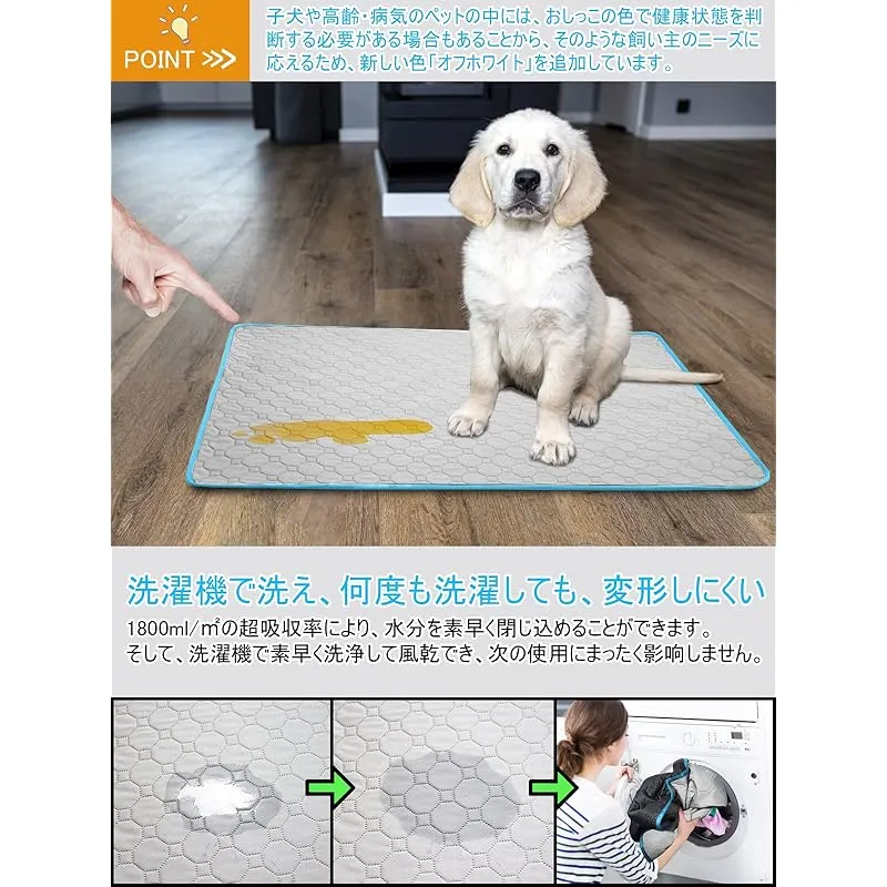 【繰り返し利用可能】一回使い捨てのおしっこシートよりもっと経済的で環境にやさしく。このペット用おしっこマットは柔らかく耐用性がよく、お手入れも簡単で、洗濯機に入れて洗えます。何度も洗濯しても、壊しにくい。速乾性がよく、繰り返し使用できます。折り畳み可能なので収納も便利です。(柔軟剤、および漂白剤の使用はお控えください) ??