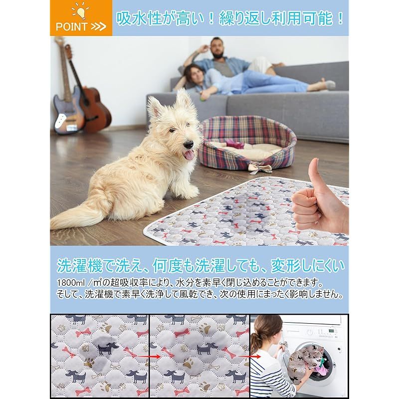 【繰り返し利用可能】一回使い捨てのおしっこシートよりもっと経済的で環境にやさしく。このペット用おしっこマットは柔らかく耐用性がよく、お手入れも簡単で、洗濯機に入れて洗えます。何度も洗濯しても、壊しにくい。速乾性がよく、繰り返し使用できます。折り畳み可能なので収納も便利です。(柔軟剤、および漂白剤の使用はお控えください) ??