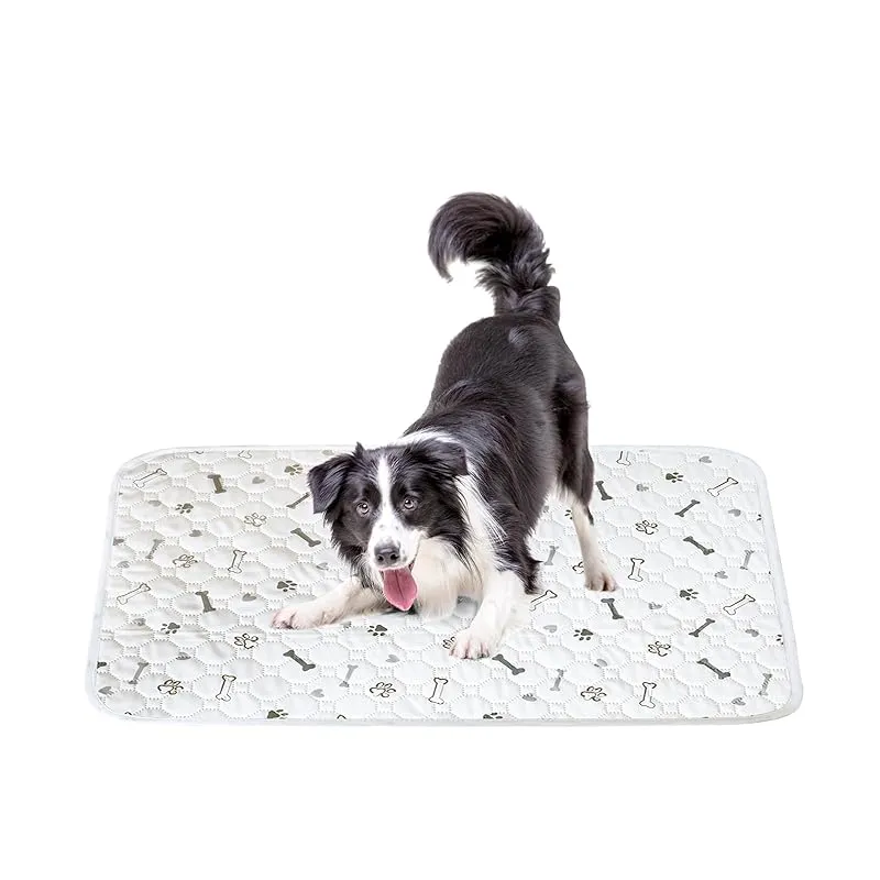 TiTiSNUGY 洗えるペットシーツ ペット用おしっこマット ペットマット 小型~中型犬・猫用トイレマット 四重構造で漏れ防止/滑り止め/超吸収 丸ごと洗える 繰り返し使える 速乾/制菌 介護(ホワイト70x50cm 2枚 骨柄) 1