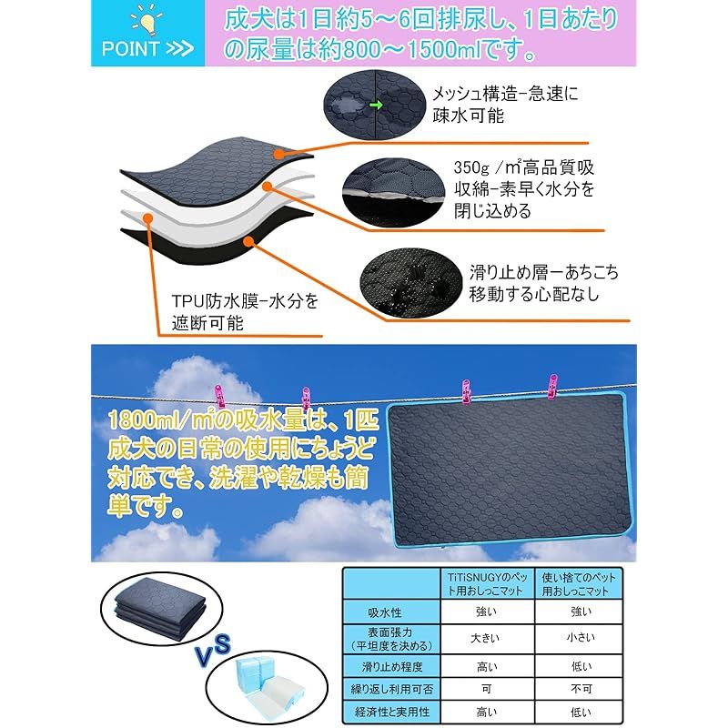 TiTiSNUGY ペット用おしっこマット ペットマット 犬トイレシート 下敷きマット 四重構造 防水 速乾 消臭 介護 漏れ防止 丸ごと洗える 2枚セット 小型 中型 犬・猫 犬用 超吸収 ペットシーツ ブルーエッジデザイン 滑り止め おしっこパッド 繰 1