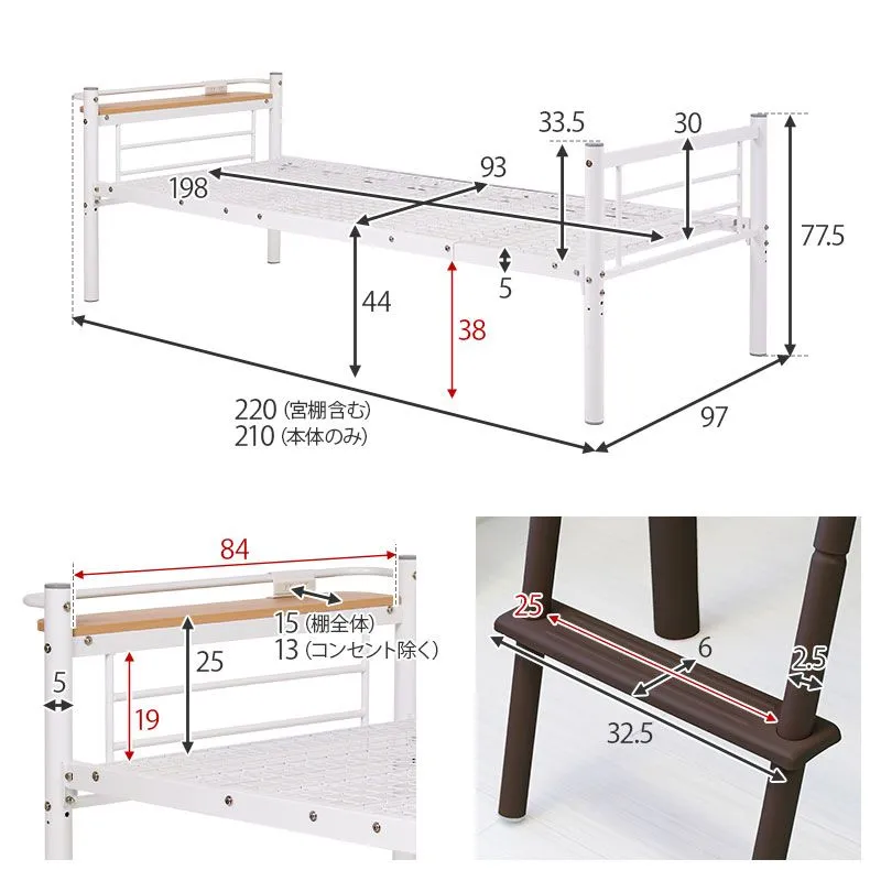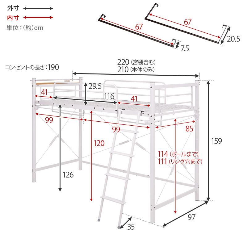 カーテンを取り付けられるロフトベッド(ホワイト) KH-3691WH