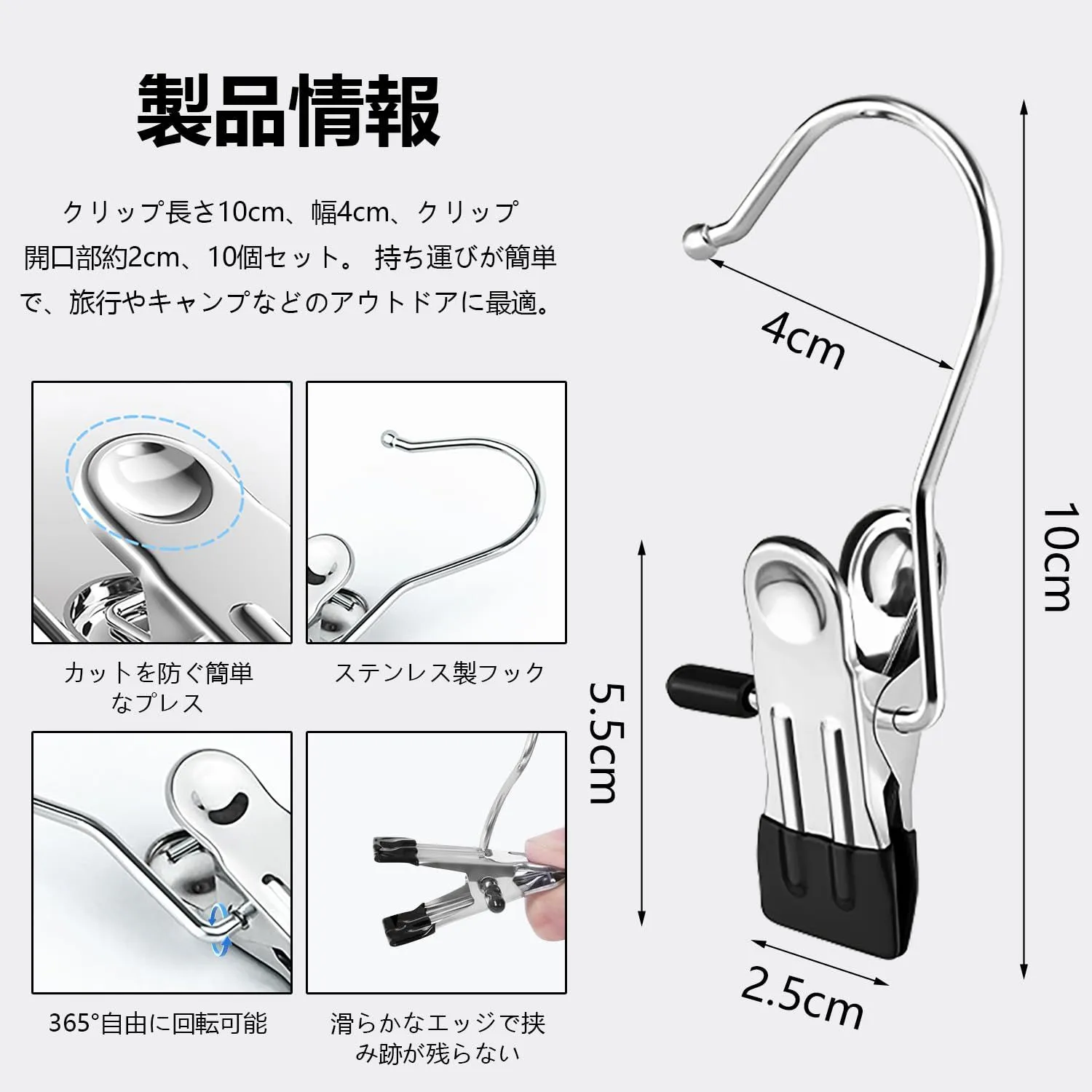 【持ち運びと移動が簡単】ステンレス製のフッククリップは軽量で持ち運びが便利で、様々な場所で使用できます。 自宅でもオフィスでもアウトドアでも、いつでも簡単に持ち運びや吊り下げができ、便利な収納ソリューションを提供します。