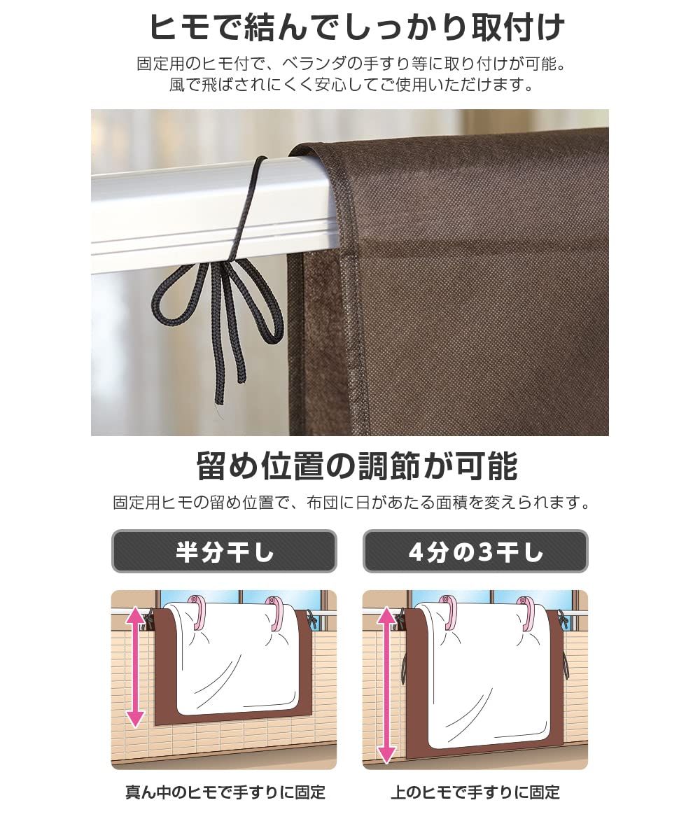 【留め位置の調節が可能】固定用ヒモの留め位置で、布団に日があたる面積を変えられます。