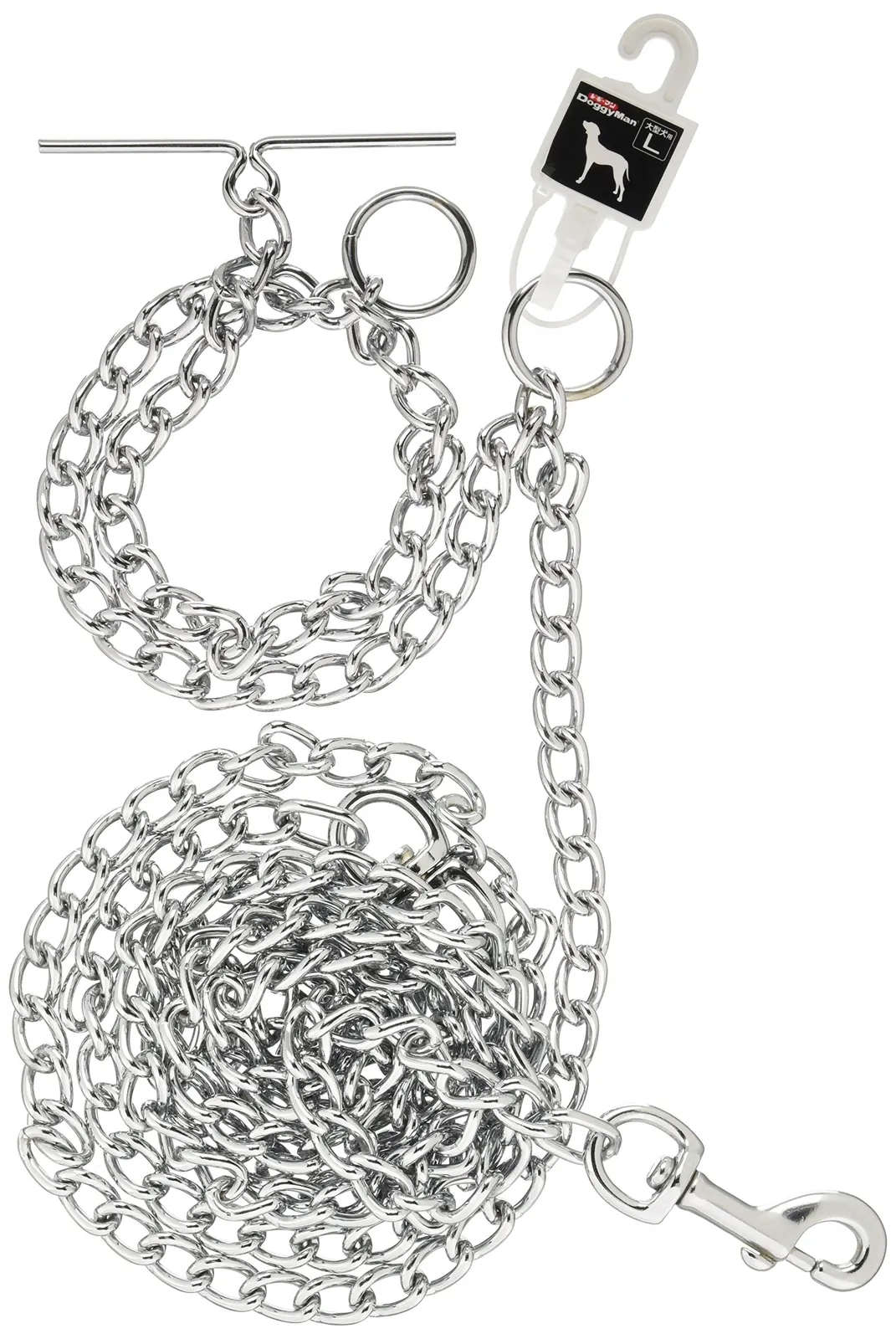 ・体重30kgまでの大型犬用つなぎ止めチェーン。3mのロングタイプ。・仕上げが美しくやさしい手触り感のマンテル鎖。・長さ300cmのロングタイプ、よじれにくい回転カン付き。・丸カンにTカンを通し、強度が十分にあるつなぎとめ箇所につなぐ。・屋外でのつなぎとめに。