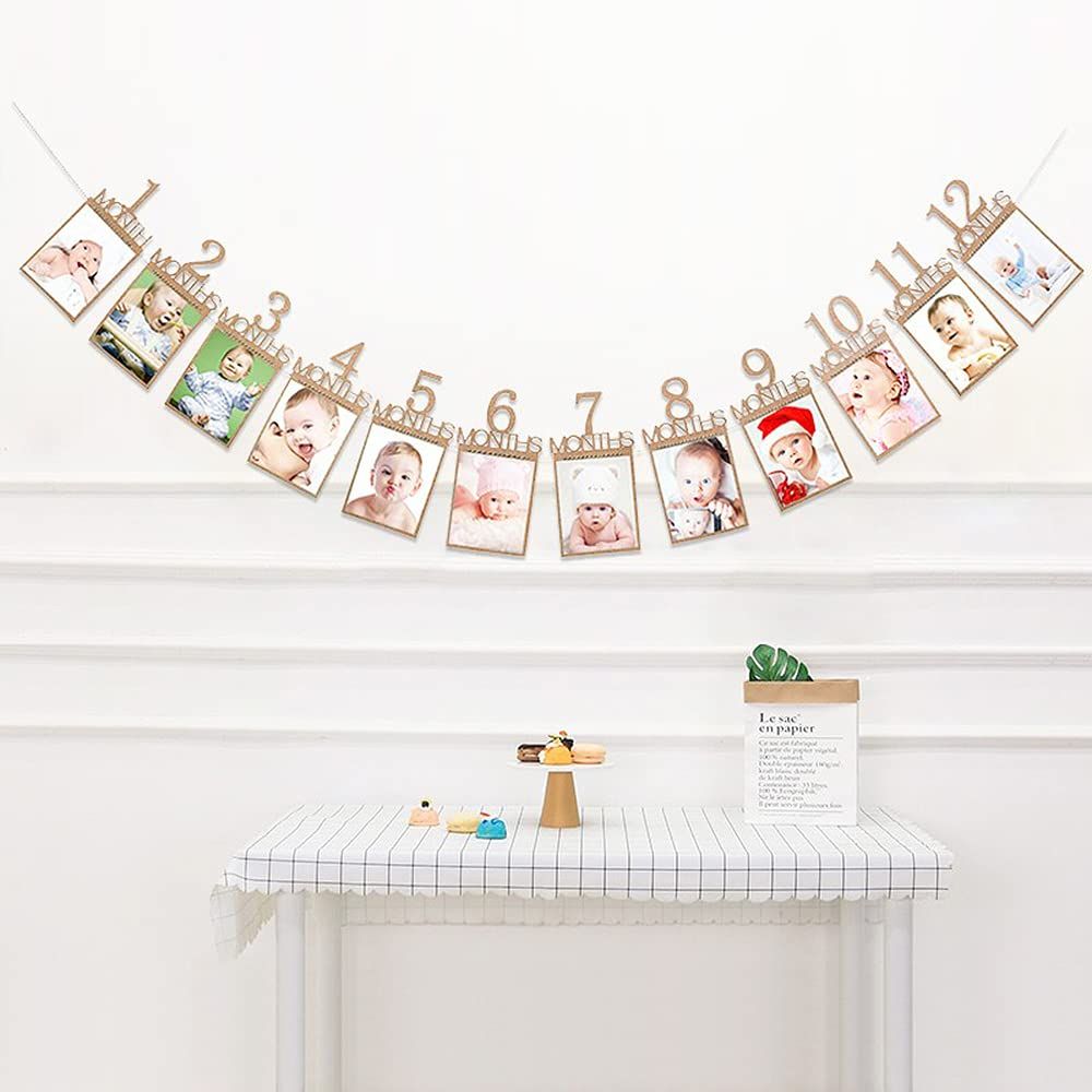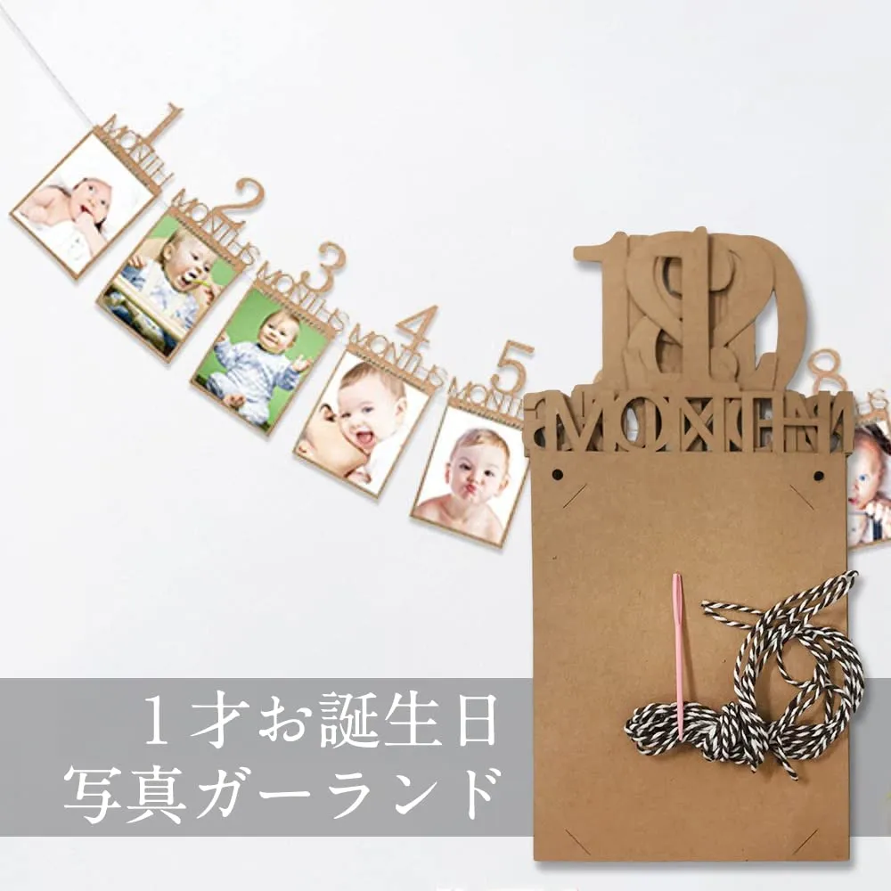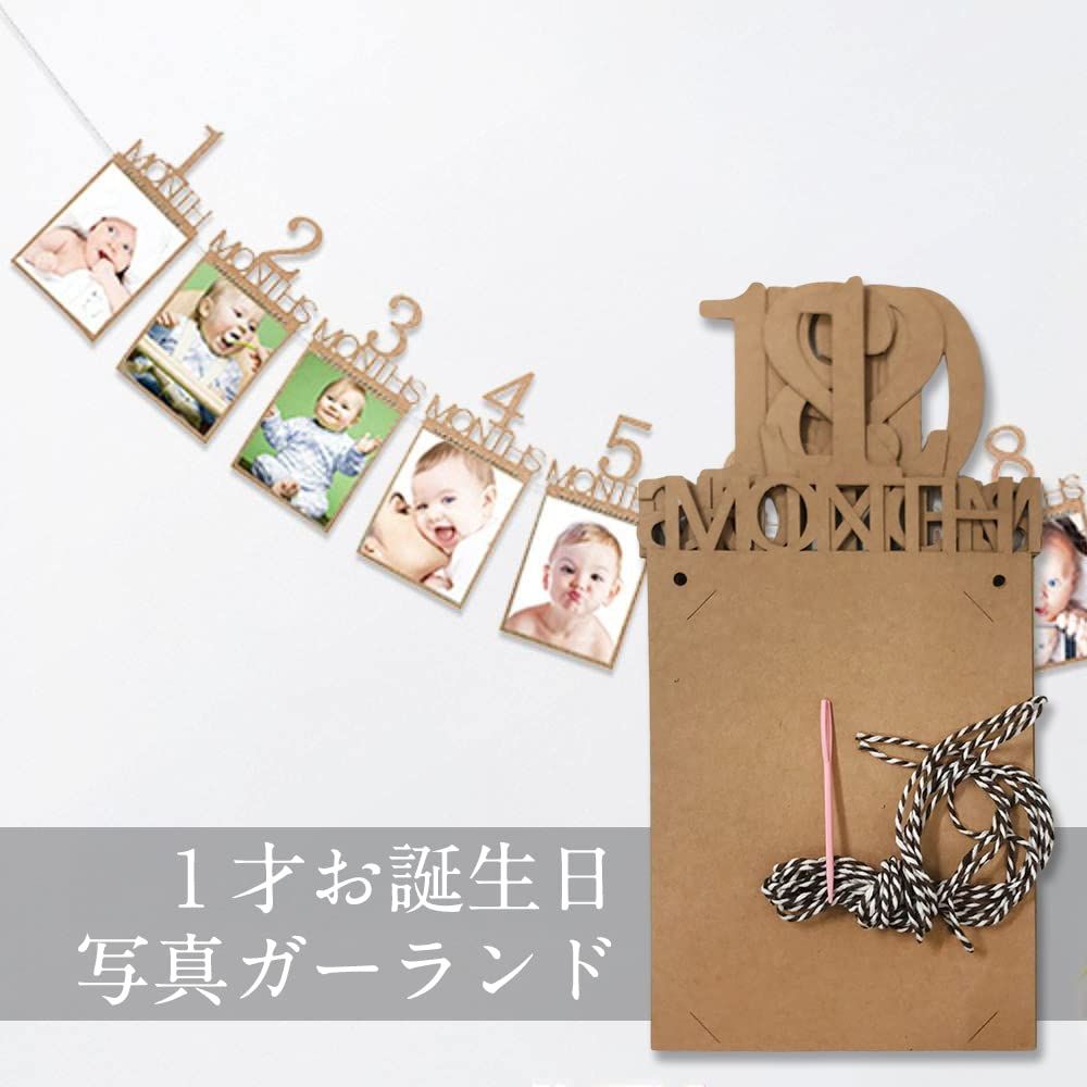 新着商品 誕生日 写真 ガーランド フォトフレーム 飾り付け 1歳 12ヶ月 バースディ パーティー お祝い 装飾 壁掛け 写真フレーム 写真立て 記念日 赤ちゃん 結婚 ひも付き (茶色)