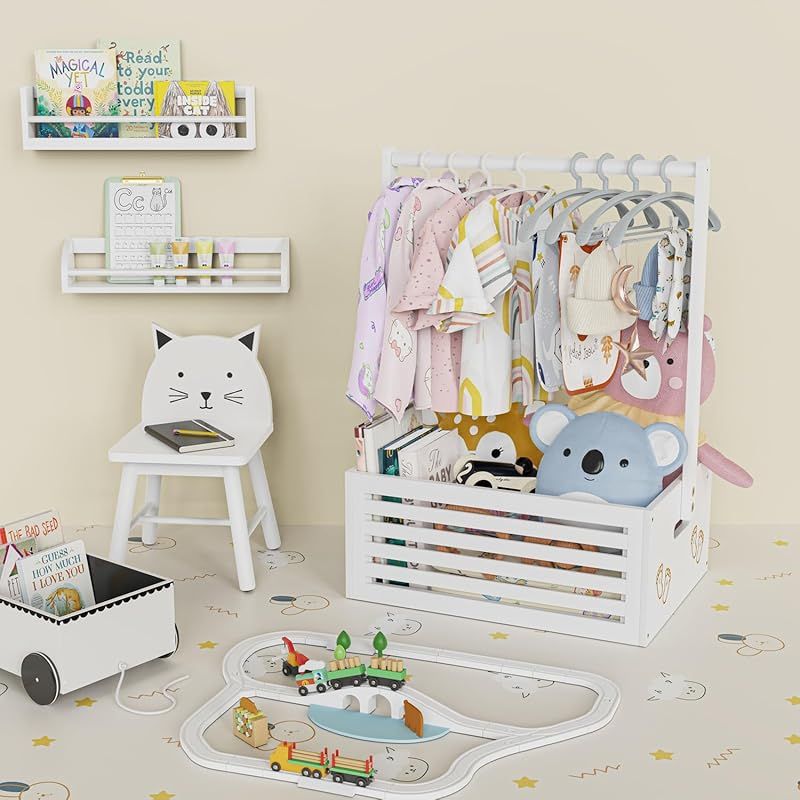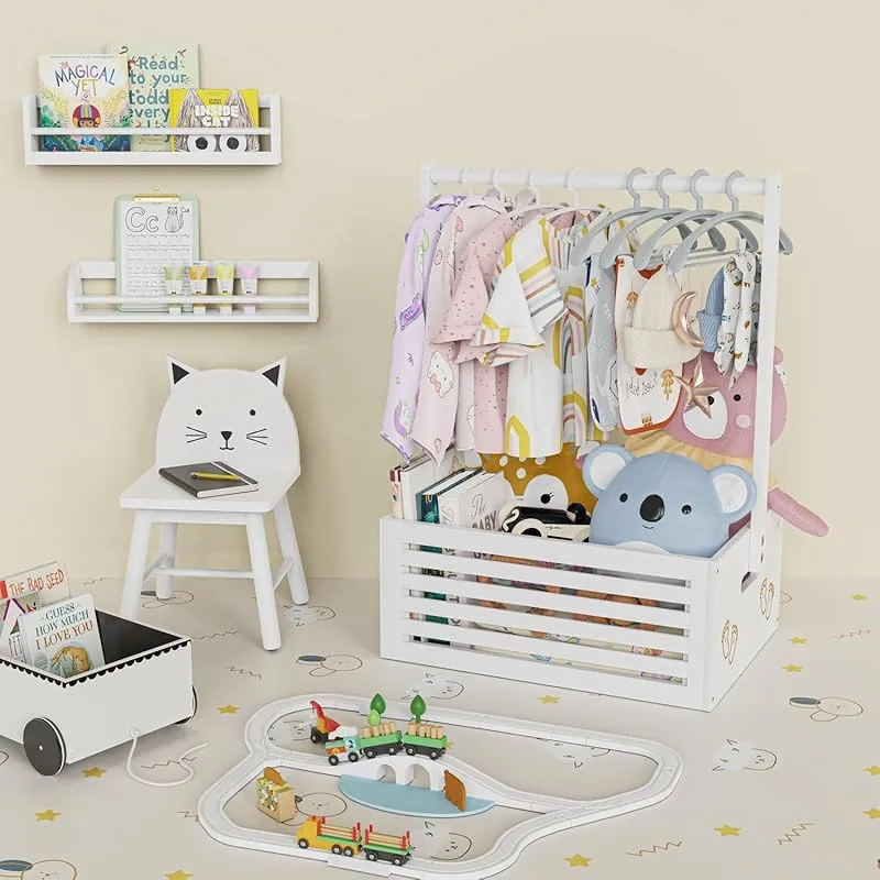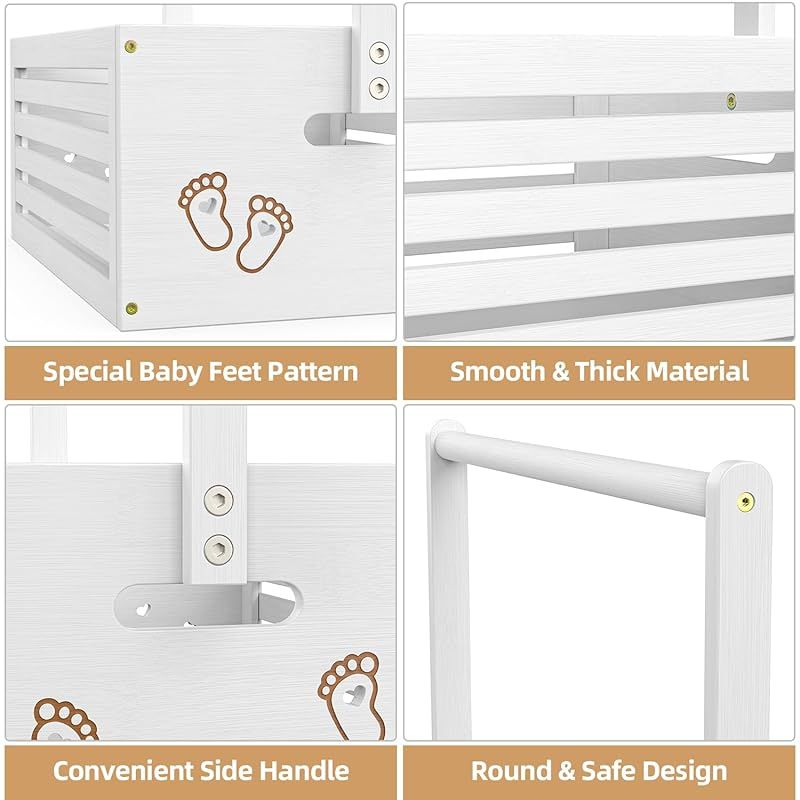ベビー ハンガーラック ミニ フットパターン 収納ボックス 調節可能ハンガー 省スペース 衣類収納 低め 竹製 可愛い 赤ちゃん用 ペット用 犬用 猫用 人形服 ペット服ラック 組み立て簡単 飾り箱 幅40cm×奥行28cm×高さ55cm (ホワイト, 大 0