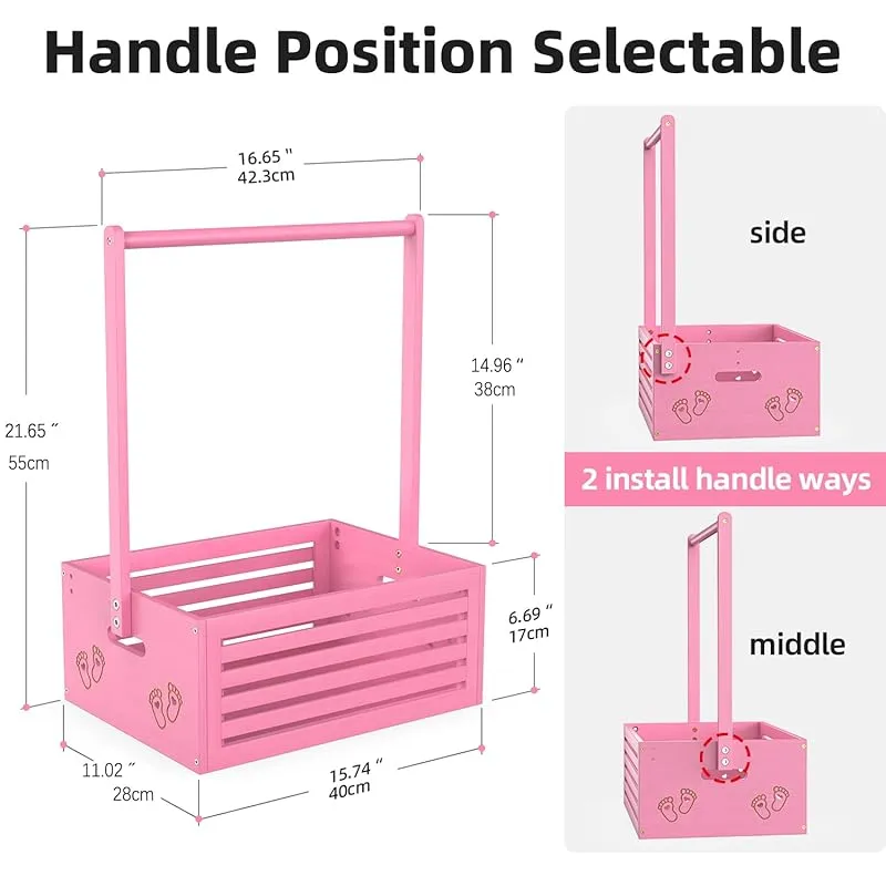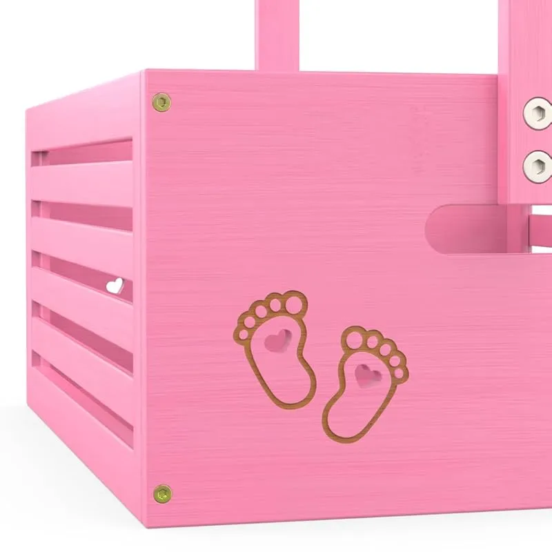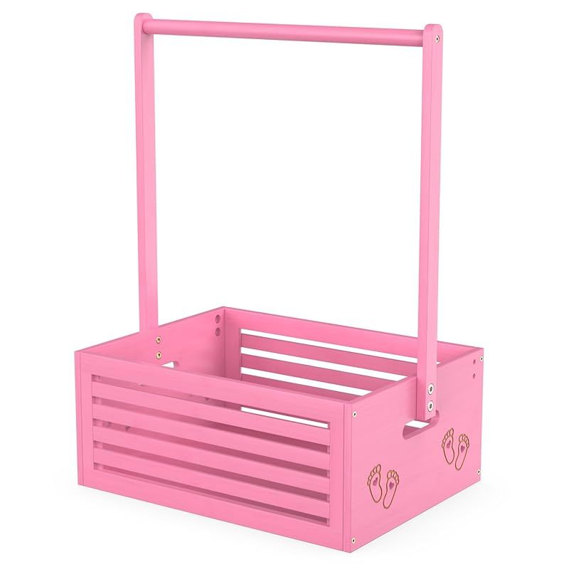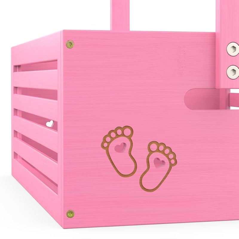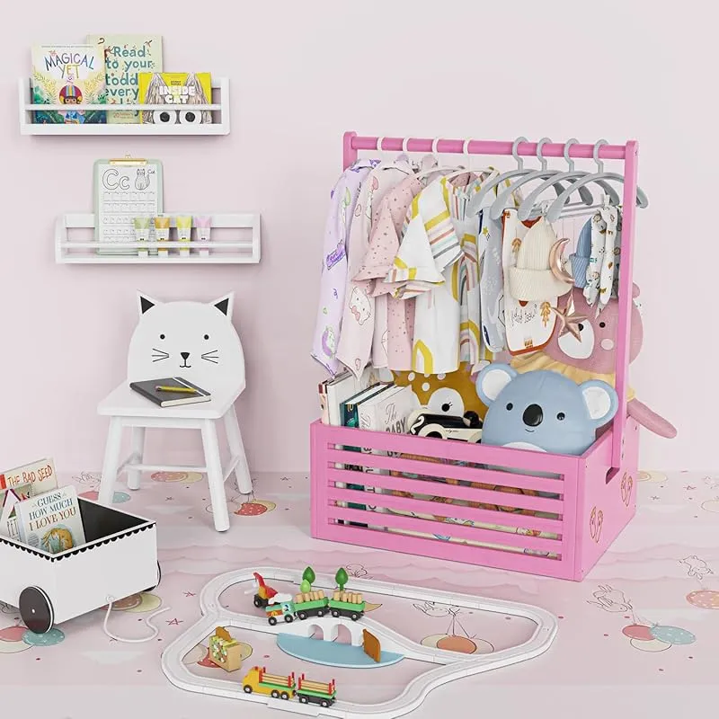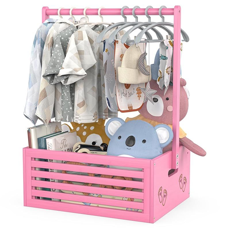 ベビー ハンガーラック ミニ フットパターン 収納ボックス 調節可能ハンガー 省スペース 衣類収納 低め 竹製 可愛い 赤ちゃん用 ペット用 犬用 猫用 人形服 ペット服ラック 組み立て簡単 飾り箱 幅40cm×奥行28cm×高さ55cm (ピンク, 大サ 1