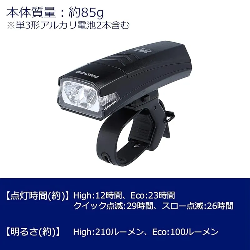 GENTOS(ジェントス) 自転車 ライト LED バイクライト 単3電池式 210ルーメン 防滴 XB-450B ロードバイク ブラック 0
