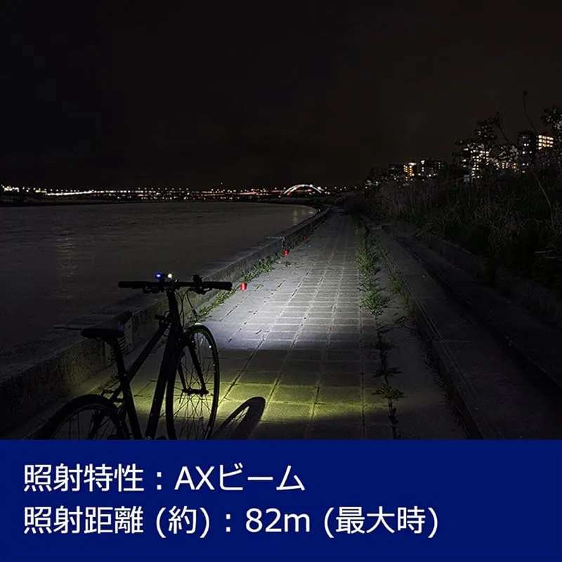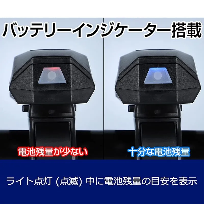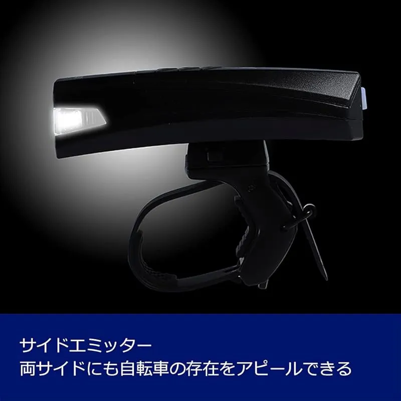 【商品概要】 サイズ:約幅98×奥行38.3×高さ26mm、本体重量:約85g (電池含む) セット内容・付属品:本体、パワーブラケット (対応ハンドル径 : 22~42mm)、テスト用電池 (単3形アルカリ電池×2本) 明るさ:High/210ルーメン、Eco/100ルーメン、使用電池:単3形アルカリ電池×2本 実用点灯:High/12時間、Eco/23時間、クイック点滅/29時間、スロー点滅/26時間 機能:1m落下耐久、耐塵・防滴仕様(IP64準拠)、最大照射距離:約82m
