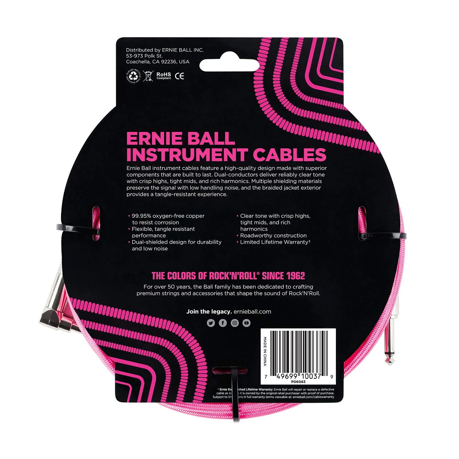 ERNIE BALL 6083 楽器用シールドケーブル 18フィート BRAIDED INSTRUMENT CABLE 5.49m ネオン・ピンク