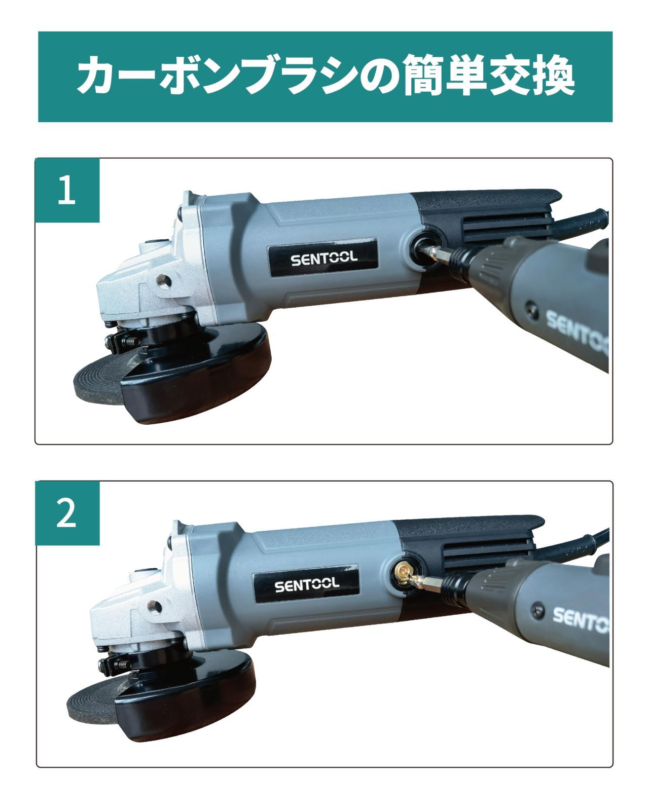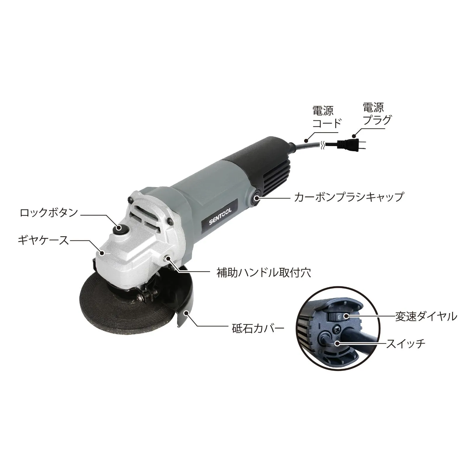 SENTOOL 変速ディスクグラインダー 100mm コード式 無段変速 7段階 1台で5役 AC100V 600W オフセット砥石(研削用)2枚付属 穴径15mm ベビーサンダー 研磨工具 アングルグラインダー TDG100V (7段階変速)