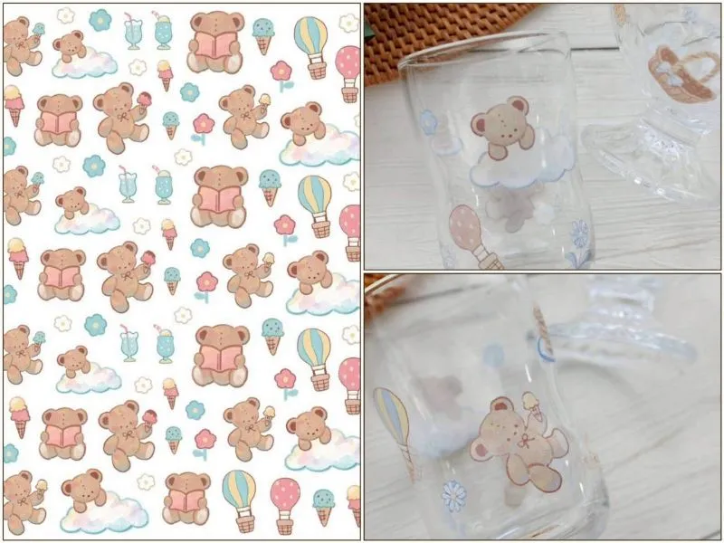 ポーセラーツ 転写紙 【ガラス用】クマのお散歩Time転写紙(ポーセラーツ 転写紙 ポーセリアート くま アイス ジュース 気球)