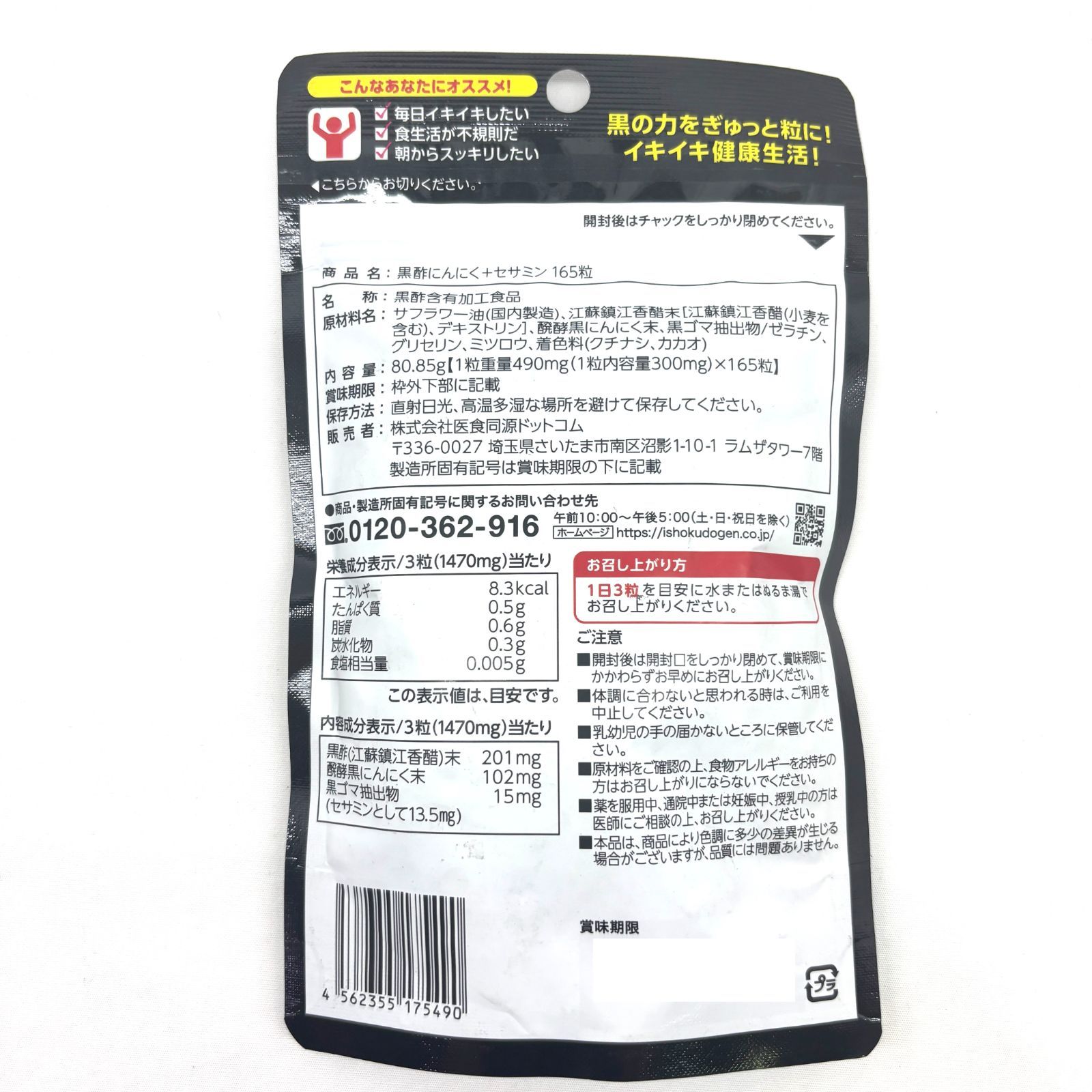医食同源ドットコム 黒酢にんにく+セサミン 165粒 55日分 お徳用 【賞味期限 2026.05.25】