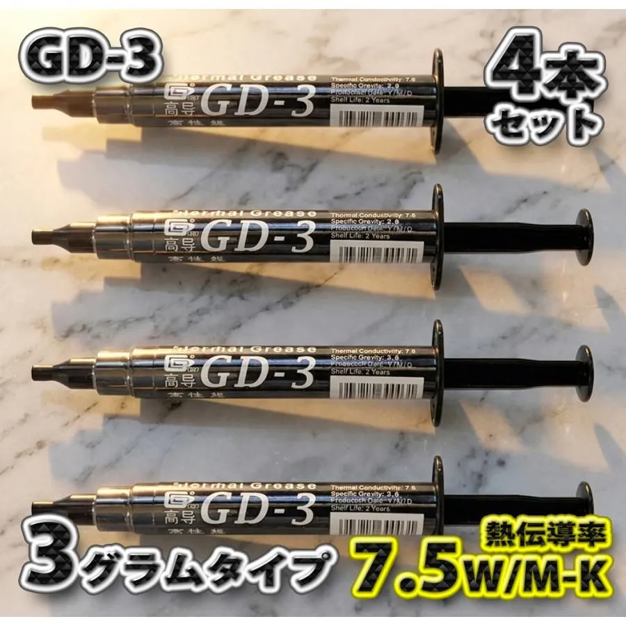 【GD-3-3gタイプ】究極の伝導率 7.5W/M-K CPUグリス GD-3 超高性能 シリコン ヒートシンク 絶縁性タイプ x 4本セット