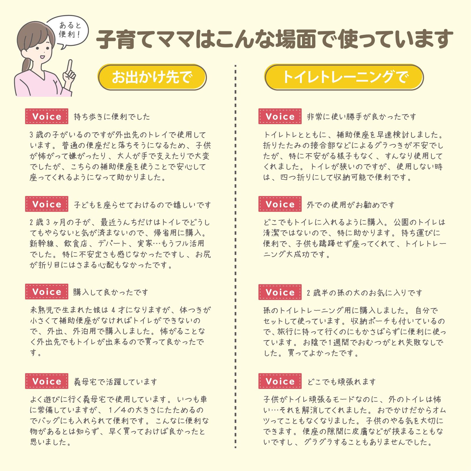 ・お子様のトイレトレーニングや外出時のトイレのサポート用品です。