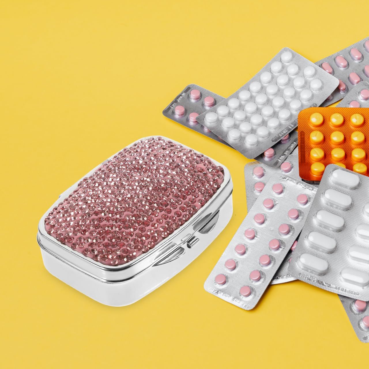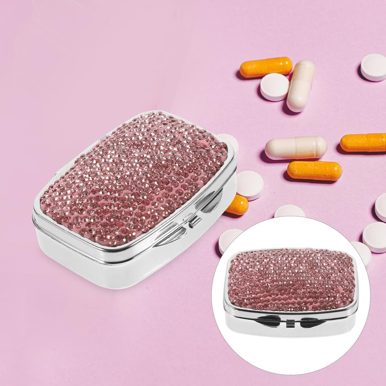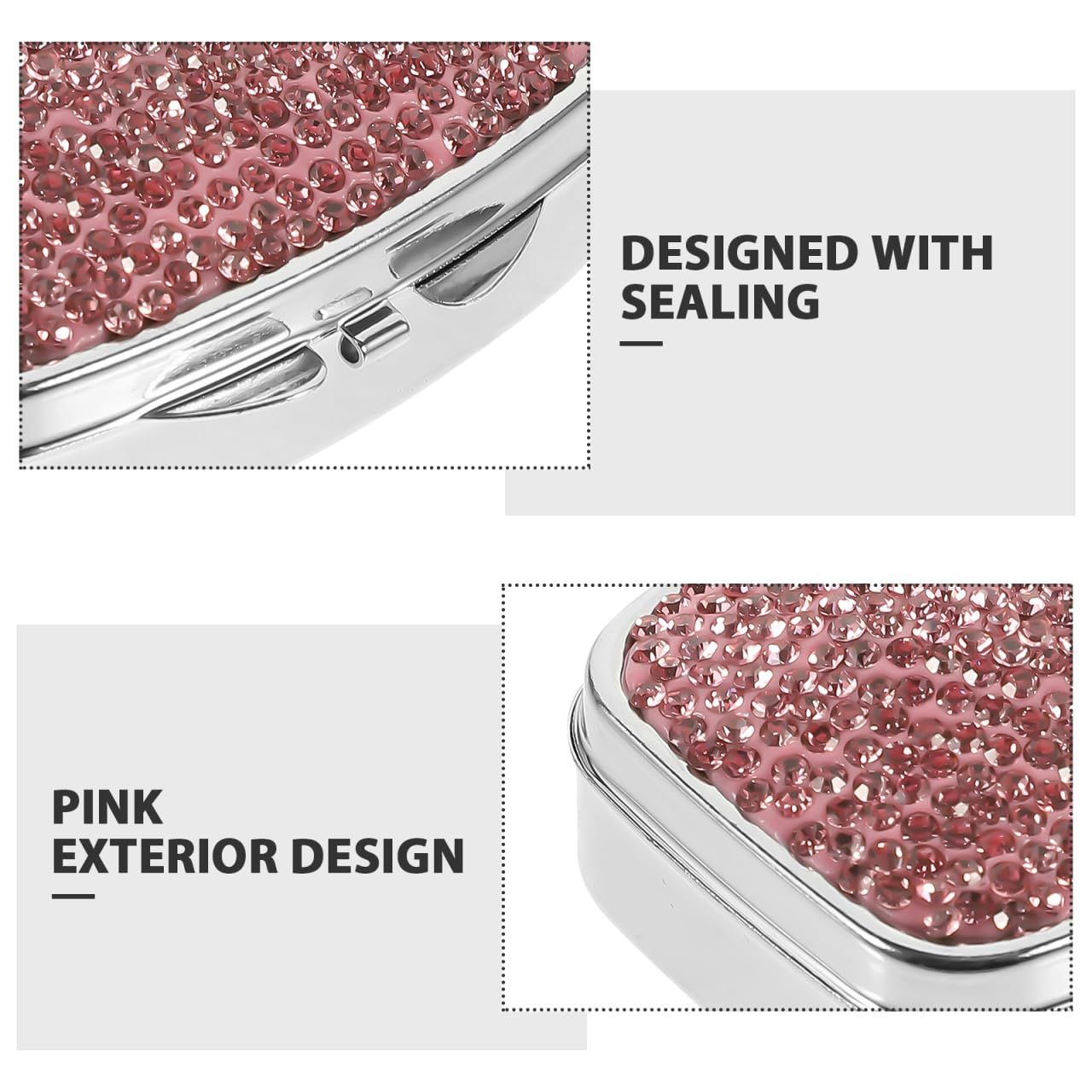 新品 Healvian トラベル ピル オーガナイザー 4 コンパートメント ポータブル ピル ケース クリスタル ラインストーン ピル ボックス デイリー ピル ホルダー 薬 コンテナ ビタミン タラ 肝臓 オイル メント ピンク