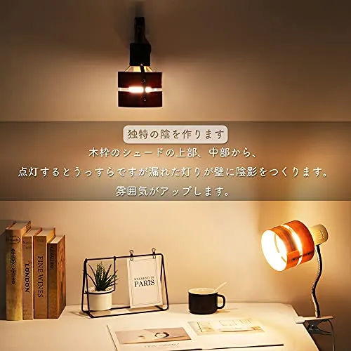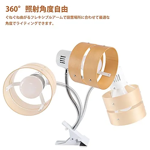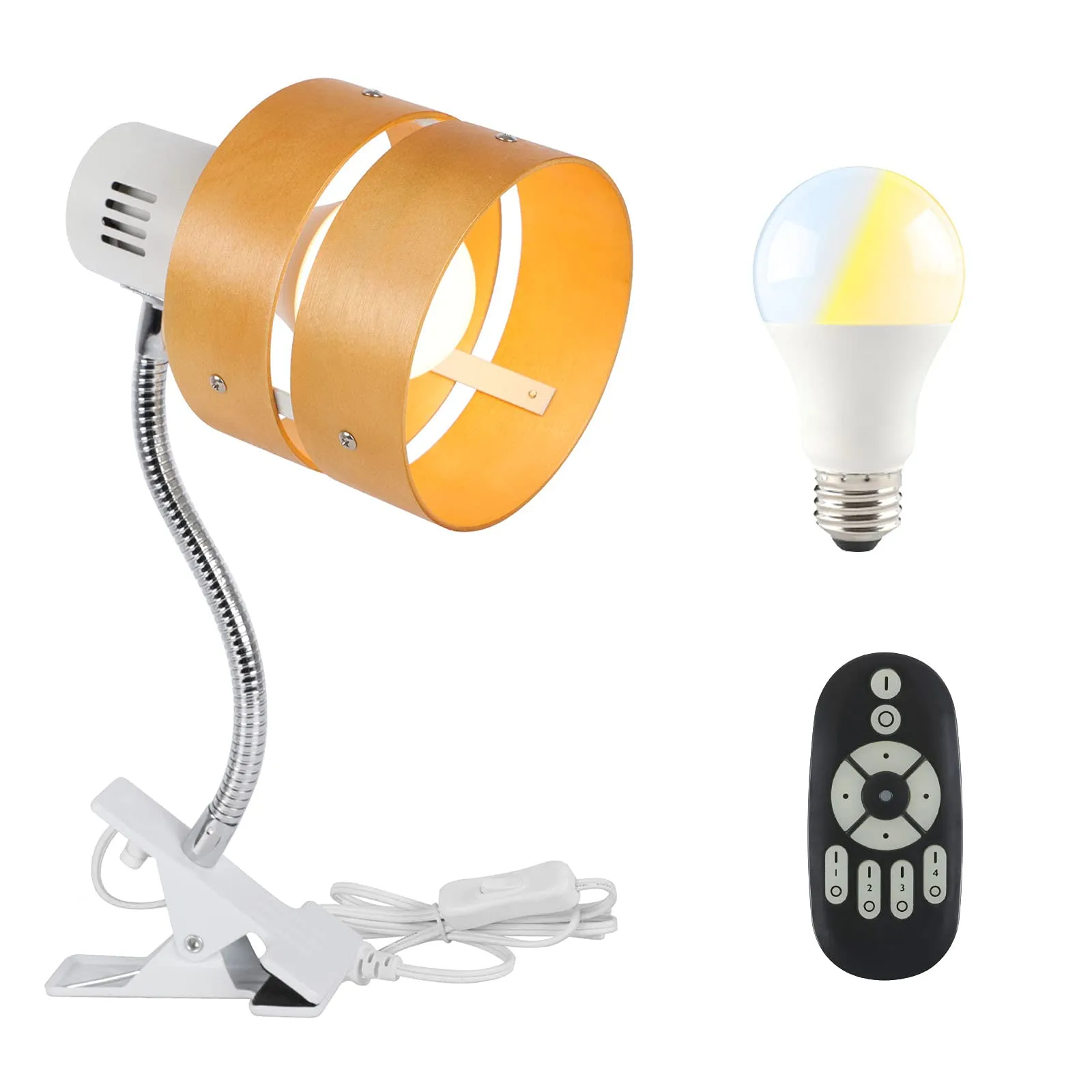 共同照明 クリップライト テーブルライト リモコン対応 おしゃれ GT-TD-C01W-9WT2-Y 調光 調色LED電球60W形付き 850lm スタンド クリップ フレキシブルアーム 角度調節可能 間接照明 コンセント式 スイッチ付き 2環ウッドシェード 作業灯 読書灯 国内発送