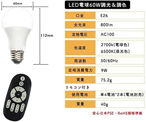 【調光&調色LED電球60W形付&便利なリモコン操作】ライトの色と光量調整は細かく設定可能であり非常に便利。 離れたところからでもリモコンで簡単にON/OFF、調光・調色などの操作が可能です。