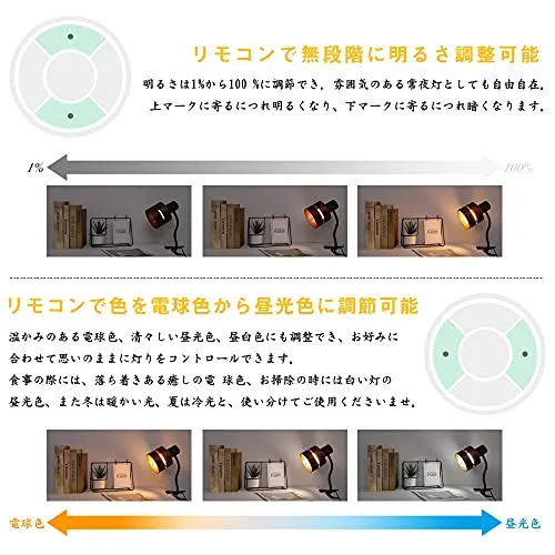 共同照明 クリップライト テーブルライト リモコン対応 おしゃれ GT-TD-C01W-9WT2-Y 調光 調色LED電球60W形付き 850lm スタンド クリップ フレキシブルアーム 角度調節可能 間接照明 コンセント式 スイッチ付き 2環ウッド 国内発送