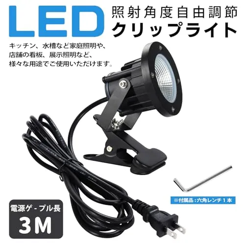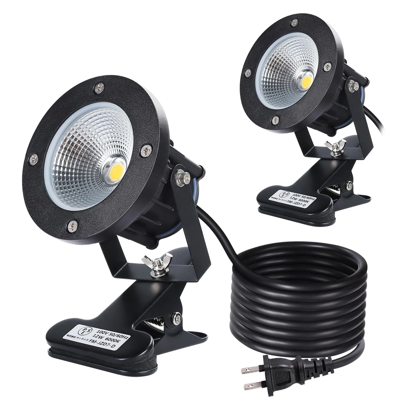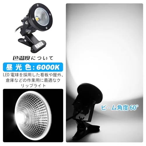 LEDクリップライト 防水 12W 白色6000K 昼光色 100W形 1300LM 小型 看板照明 屋外/屋内兼用 延長コード3m 看板用、黒板用照明、店舗看板、店頭看板用 2個セット (昼光色) 国内発送