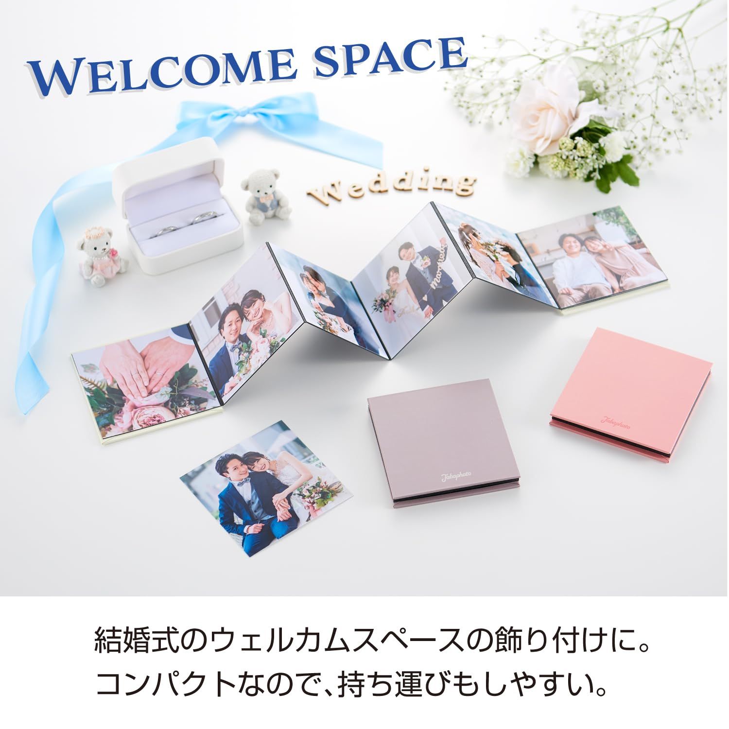 ○ましかく写真(89×89mm)12枚収容可能。○ジャバラ黒台紙(ドット糊):全12ページ(片面6ページ)○本体サイズ:H95×W91×D11mm(展開時:H95×W636mm)○カラー:4色(ライトブルー、ピンク、グレー、ホワイト)○日本製 ・ましかくサイズ(89×89mm)以外の商品は貼り付けないでください。台紙同士が貼りついたり、写真がはみ出て折れる恐れがございます。 ・台紙全面に貼った後は、写真を剥がすことはできません。