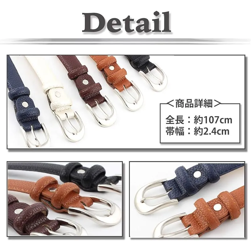 【商品概要】 シンプルで おしゃれ な レディース カジュアル ファッション レザー 細 ベルト ! パンツ や ワンピース ドレス と カジュアル シーンにおしゃれ & かわいい を演出できる ベルト ! 全体的にスタンダード なデザインなので、カジュアルはもちろん フォーマル ビジネスシーンにも最適。さりげない おしゃれを楽しめるベルトです。 色違いを揃えてその日の気分やコーディネートに合わせて おしゃれ に! カラー:全5色 素材:合皮(PUレザー) サイズ:長さ 107cm以下 帯幅約2.4cm