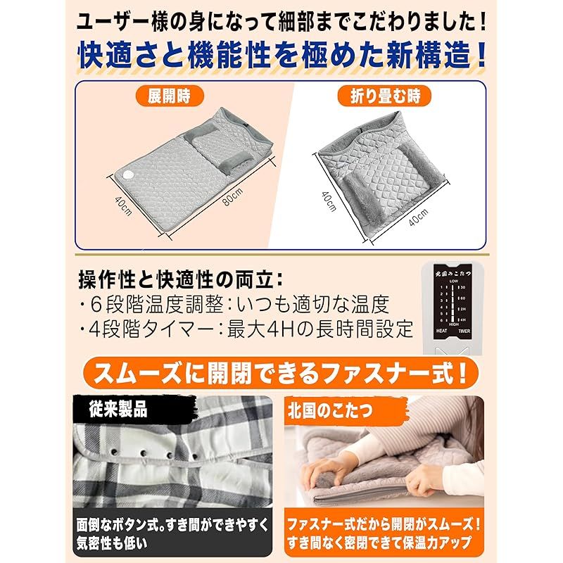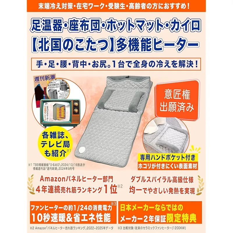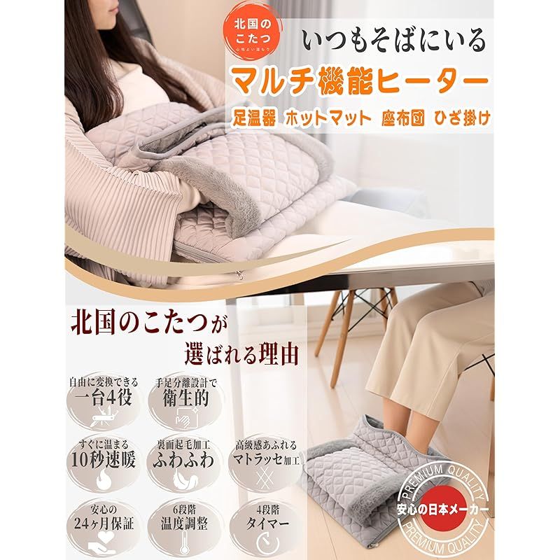 【北国のこたつ ・2年品質】 省エネ 10秒速暖 5段階温度調節 9段階切タイマー 転倒オフ 寒さ対策 底面発熱 天板付き 日本仕様 暖房器具 受験勉強 オフィスに最適 (足温器-グレー) 製造元:Genki Labo Co., Ltd. 商品番号:ph 商品内容:足温器-グレー 色:足温器-グレー