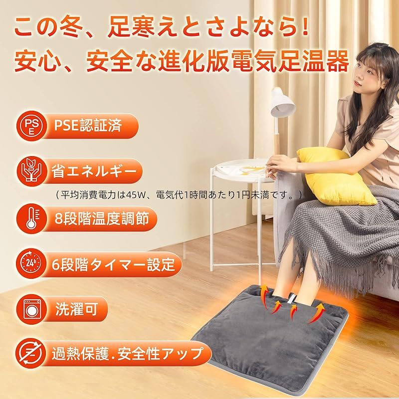 2025年新モデル 電気足温器 【8段階温度制御&6段階タイマー】 BILIWAL 電気フットウォーマー 速暖 柔らかフランネル 通気 抗菌 防臭 軽量 過熱保護 丸洗い可 省エネ 収納簡単 足元ヒーター ホットマット 足元 あったかグッズ 冷え症対策 4 0
