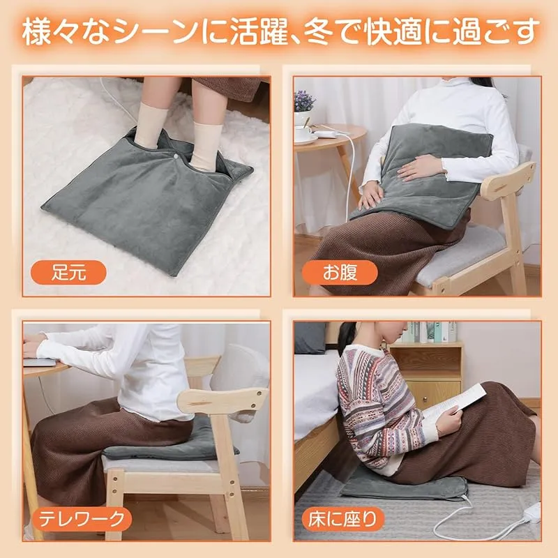 【足の冷えの改善に限らず様々なシーンで活躍】足元ヒーターとして、足を暖めることで、血流に乗って暖かさが全身にも拡がり、寒い冬でもぽかぽか~それ以外、ホットマットとして、背中、腹部も暖められます。床に座るとき、加熱座布団としても良いです。足温器だけではなく、様々なシーンでも活用できます。