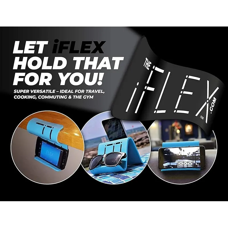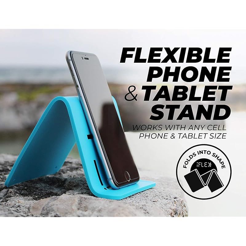 【ご注意!】現在、商品上に表記されているiFLEXのロゴは偽造防止の一環として、白の印字でなく、刻印のロゴにリニューアルしました。(中央部に短辺に沿った横書き) iFLEXはシリコン製で自分の好みの形に自由に変形できるスタンドです。スマートフォン、iPhone、タブレット(タブレットなら横置き用として、~約11インチ)を固定します。スマートフォンを縦置きで使用する場合は高さに対応できるよう、卓上に触れる後ろ足の先端周辺は折らずにご使用ください。 動画視聴やビデオ通話等にも最適で、飛行機、新幹線、オフィス、自宅等さまざまなシーンで活躍します。また、ゲーム機や手帳、小袋、小物等、適した大きさのものなら、何でも固定し、スタンド、ホルダーとして、役に立つ汎用性の高く、幅広くお使いいただけます。 iFLEXは滑り止め、グリップが効いております。シリコン製の薄い平板一枚のため、かさばらない、持ち運びに便利なポータブルスタンドです。防水のため、水洗いができ、お手入れも簡単です。抗菌性、耐熱性もあります。 シリコンで覆われているため、デバイスを傷つける心配はありません。自在に変形できるので、iFLEX(アイフレックス)スタンドを縦に上手く巻きつけることができる場所があれば、ホルダーとして、卓上等の水平面の場所以外でも使用できます。