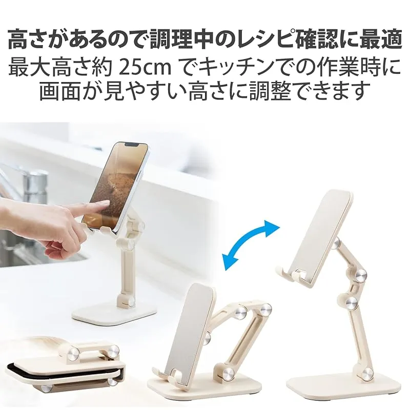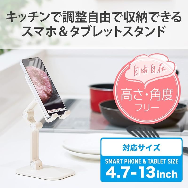 エレコム タブレットスタンド スマホスタンド キッチン向け 料理 折り畳み式 コンパクト収納 Android、ipad、iPhone、Switch対応 アイボリー HA-STFD01IV 0