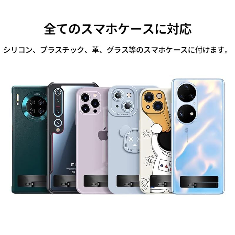 【安定感抜群】シリコン、プラスチック、革、グラス等のスマホケースに付けます。取り付け簡単で、強力な接着力により安定感が長時間持続します。