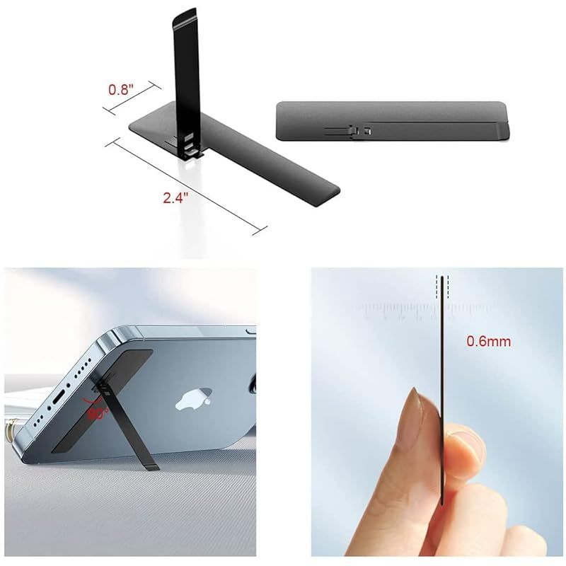 AOOMO スマホ メタル キックスタンド 超薄型 驚きの薄さ 0.6mm ステルス スタンド 金属 製 貼り付け 縦置き 横置き 対応 iPhone/iPad/Android 多機種対応 (ブラック) 0