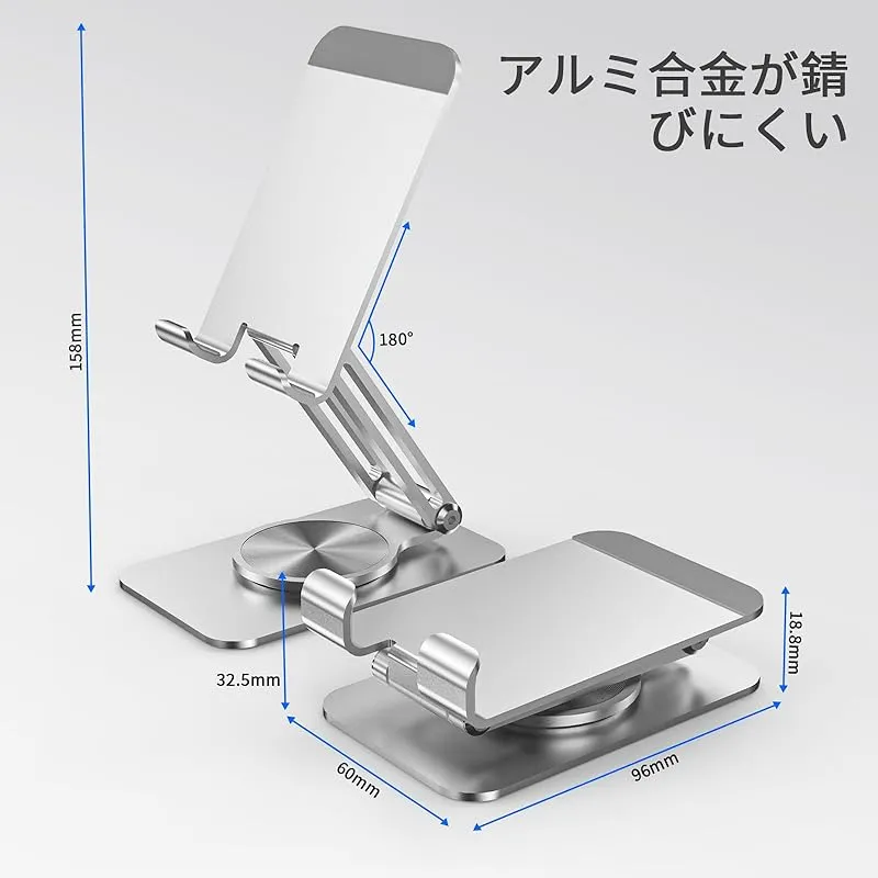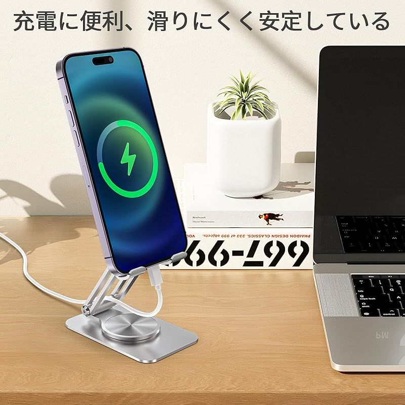 【商品説明】 スマホスタンド 携帯スタンド 卓上アルミニウム合金製 無段階360度回転調整 スタンド折りたたみ式 iPhone 16 15 14 plus promax 13 mini プロ マックス se Huawei android に対応