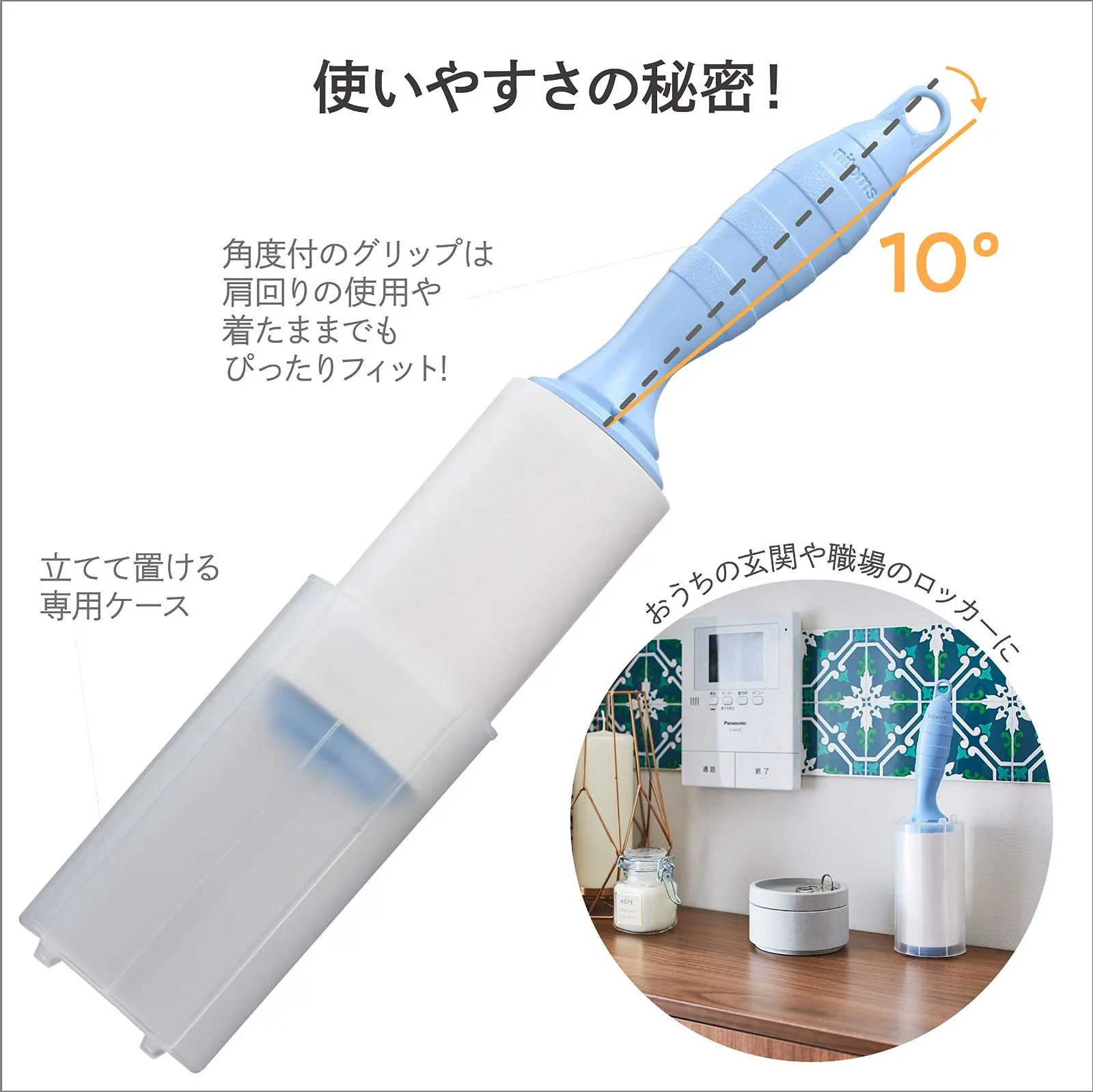 【玄関などに】持ちやすく玄関やクローゼット、職場などにも置きやすいタテ型洋服用コロコロ