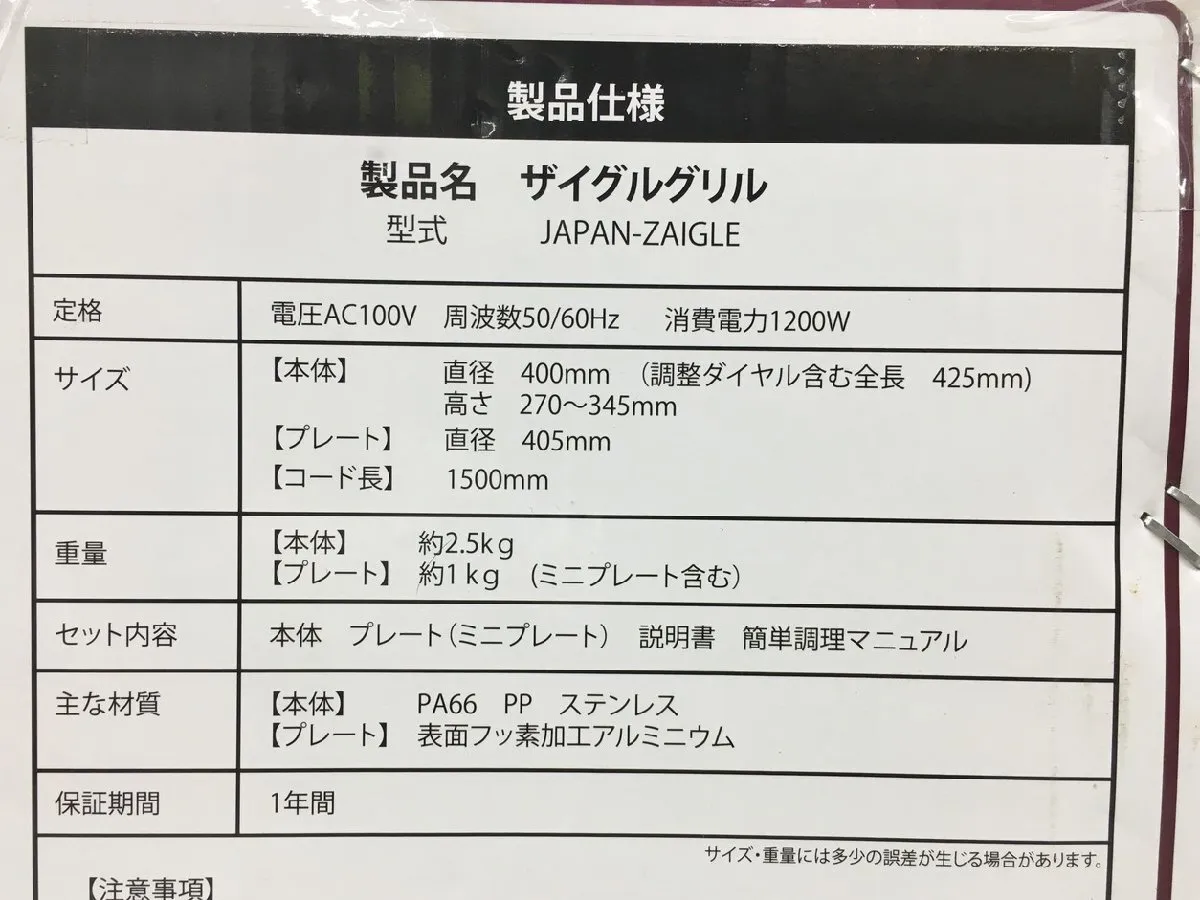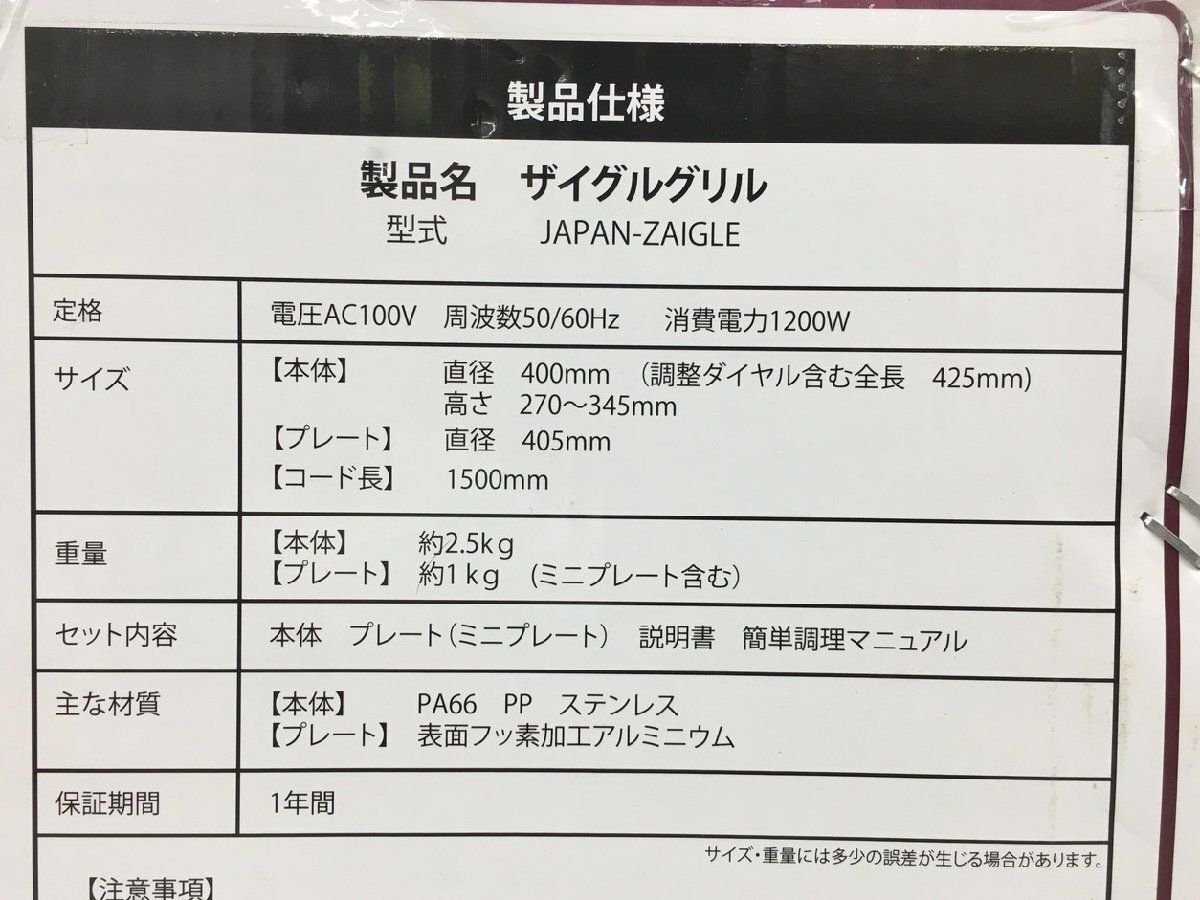 赤外線サークルロースター ザイグル グリル JAPAN-ZAIGLE ザイグル ZAIGLE 未開封 2508LS085