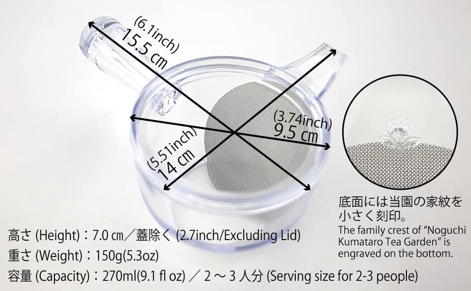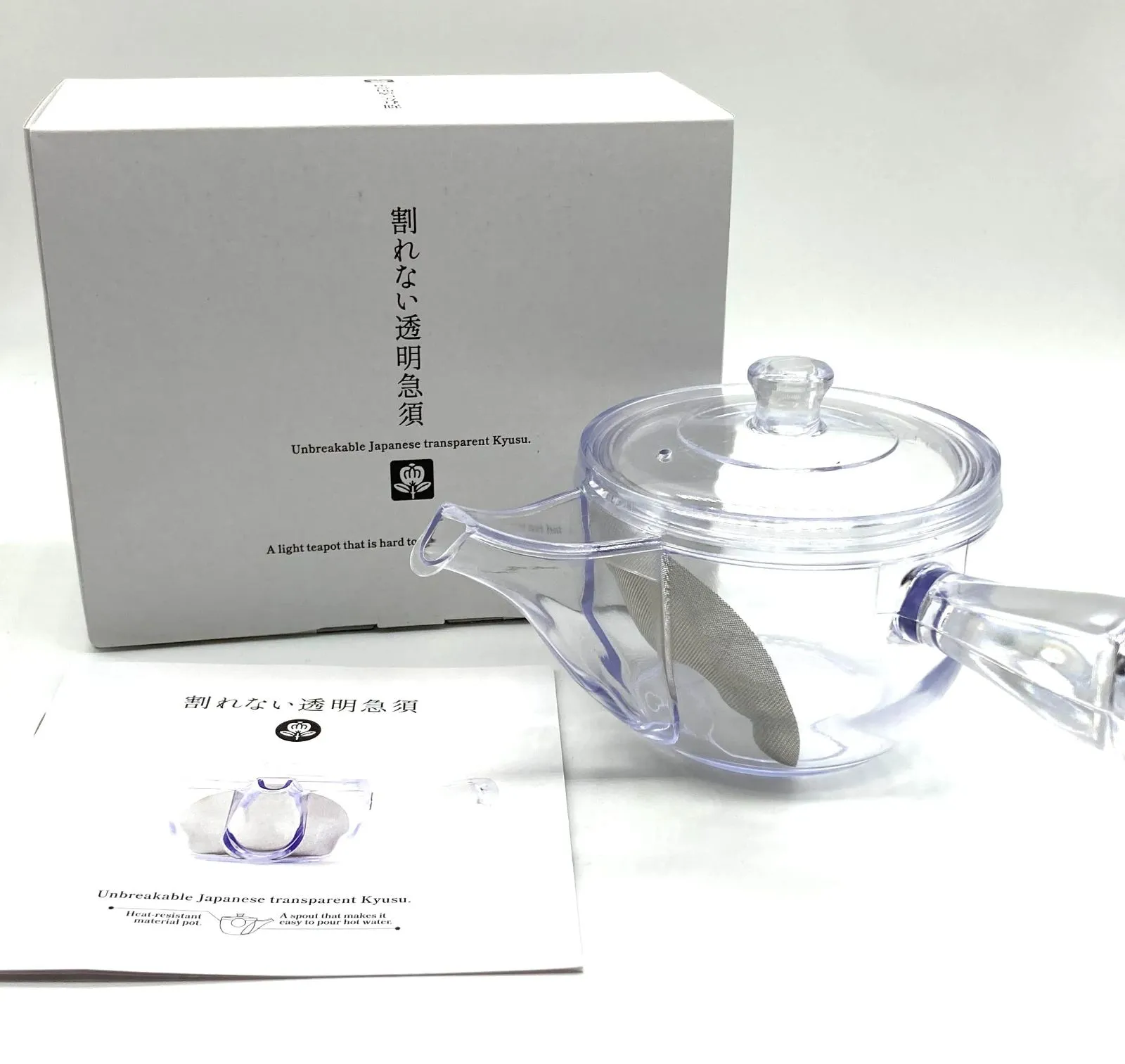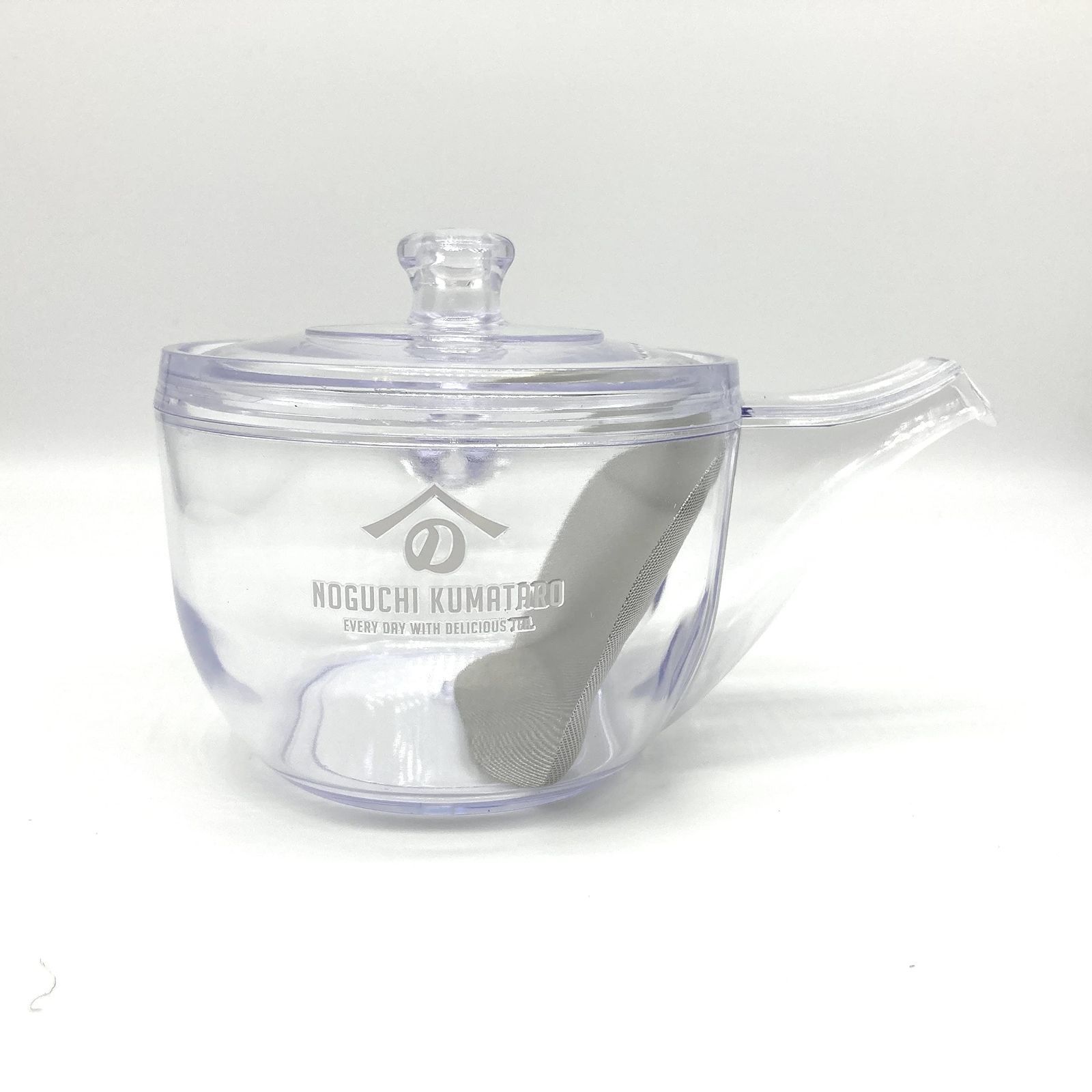 割れない透明急須 クリア(野口熊太郎茶園限定ロゴ入り) お茶の淹れ方リーフレット付き 日本製 プラスチック製 緑茶・紅茶・ほうじ茶・烏龍茶・ハーブティー対応 水出し・氷出し対応 食器洗浄機可 漂白剤可