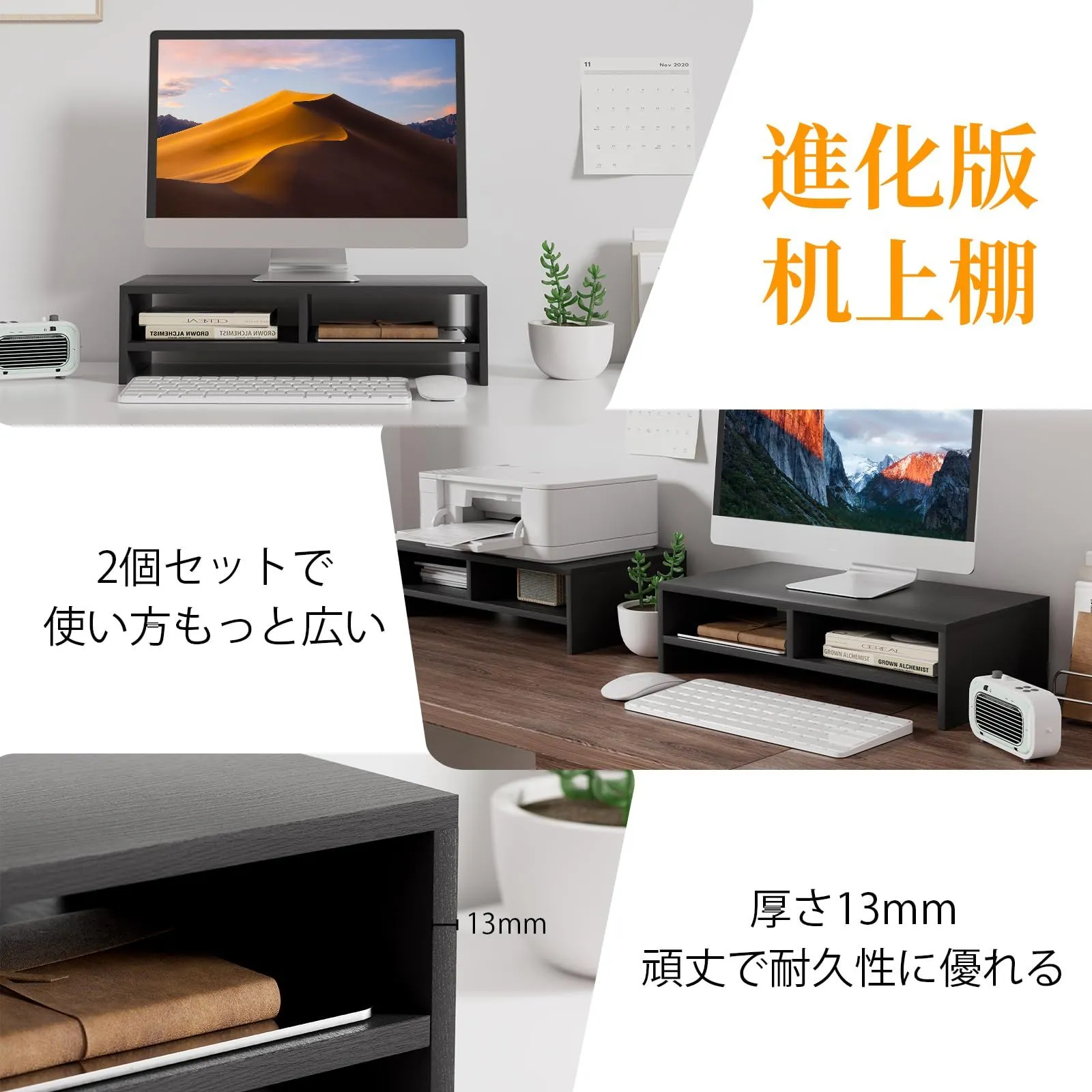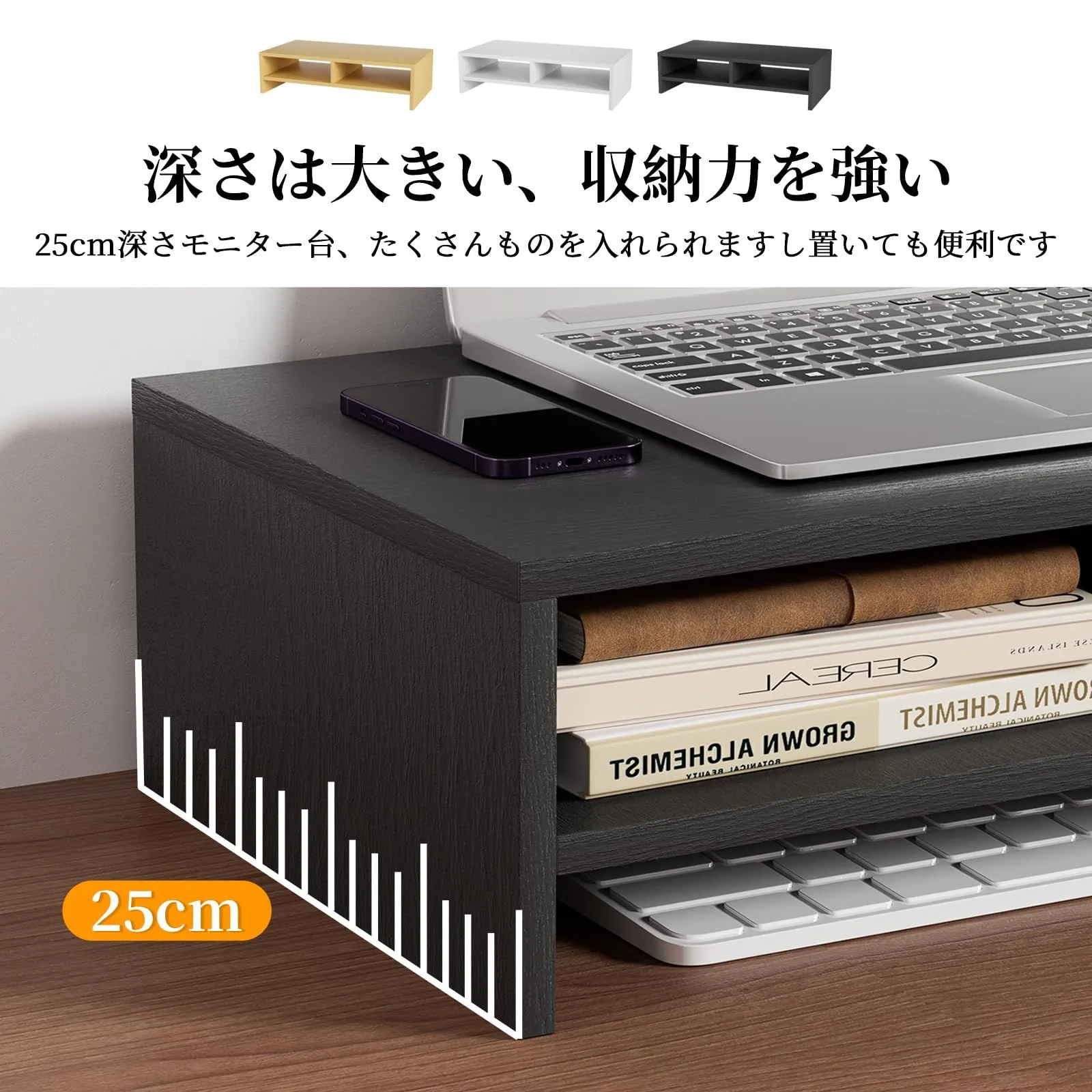 【商品仕様】机上ラックの本体サイズ:幅50*奥行25cm*高さ14cm本体重量:約2.5kg。 耐荷重 : 40KG 本モニター台はMDF/合成繊維板で作られます。この素材はコストパフォーマンスが優れて、環境にやさしいです。