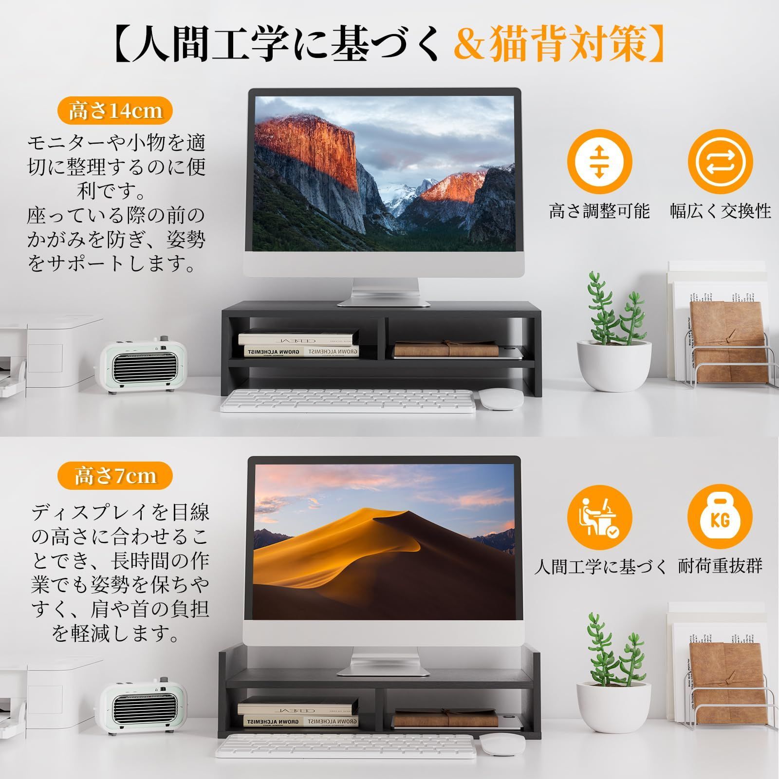 【人間工学に基づく&猫背対策】他のスタンドに比べて、構造もしっかりしていて良いモニタースタンドだ,優れたデザイン。一般的なモニターを置くことができます。モニターの高さは普通より10CMアップさせます!それにより、自然に目線の位置を上げて目の疲れや背中および頚椎の疲労を軽減でき、作業効率もUP! 健康な生活ができます!