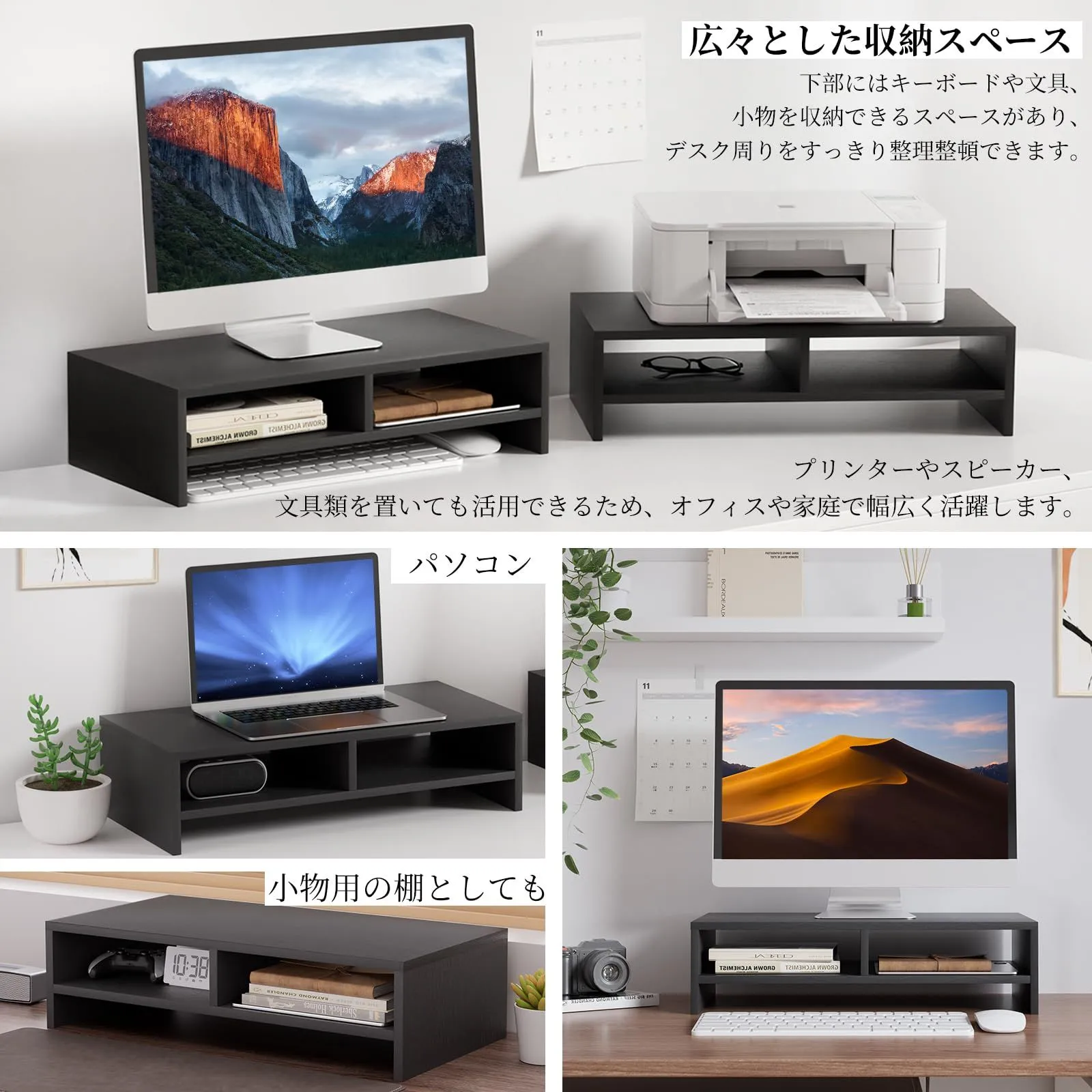 【省スペース&多機能】モニター台は様々な場合に大活躍!本棚やプリンター台/fax台などとしても便利です。キーボードやマウスを収納するには役に立ちます。多機能な机上台で、オフィスや研究室やリビングルームなどの場合もオススメです。画像や鉢植えなどお好きなものを飾れば、自分だけの癒し空間がつくれます。疲れが吹き飛んで作業率もアップさせる。
