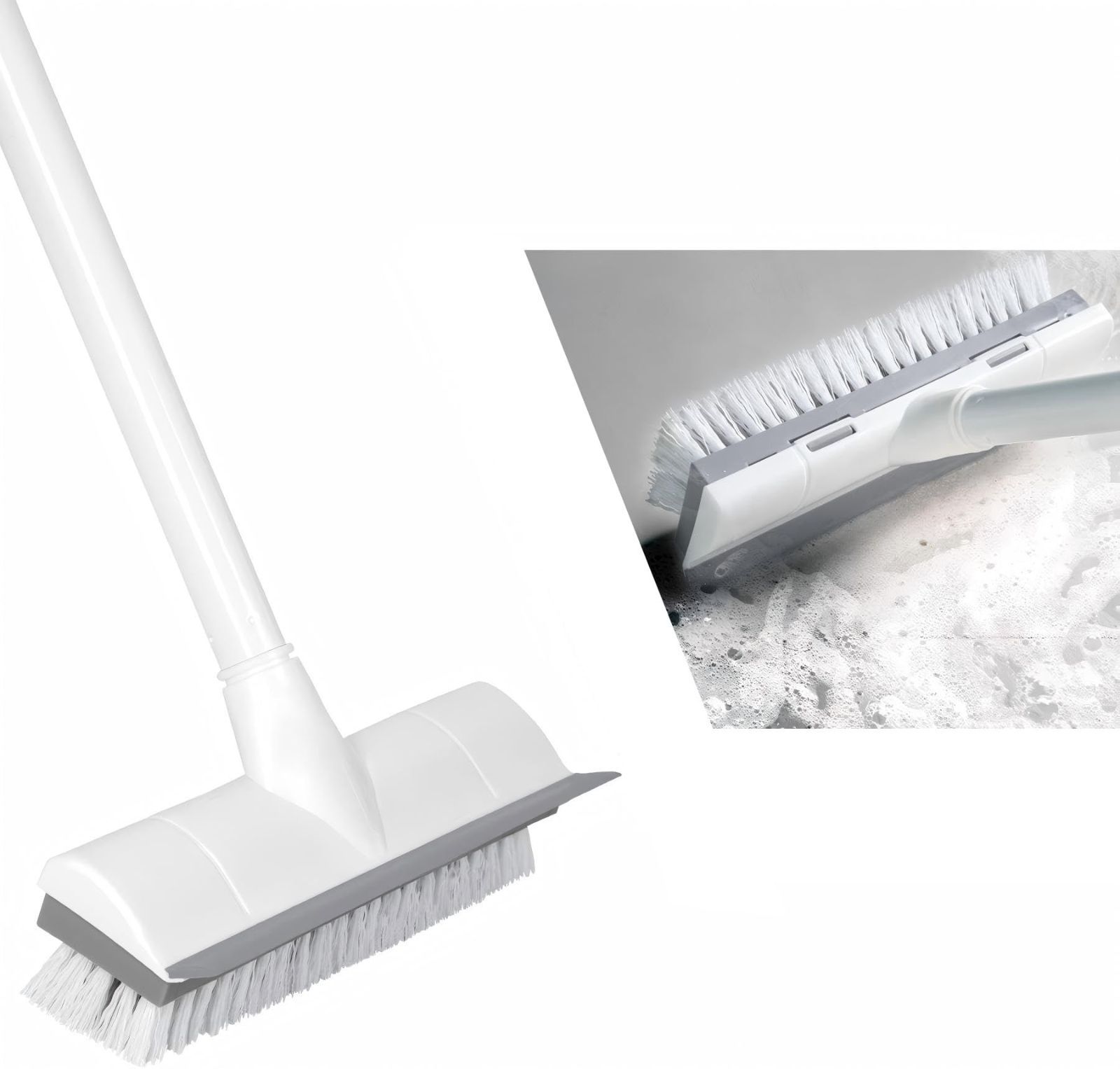 【特価セール】47cm-127cm ベランダ/玄関/床/庭園にも適用 長さ調節可能 3段ポール 掃除用品 タイルブラシ 水切りワイパー 風呂掃除 2in1 掃除用ブラシ (ホワイト) デッキブラシ CLEANHOME