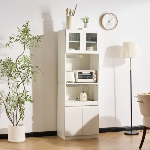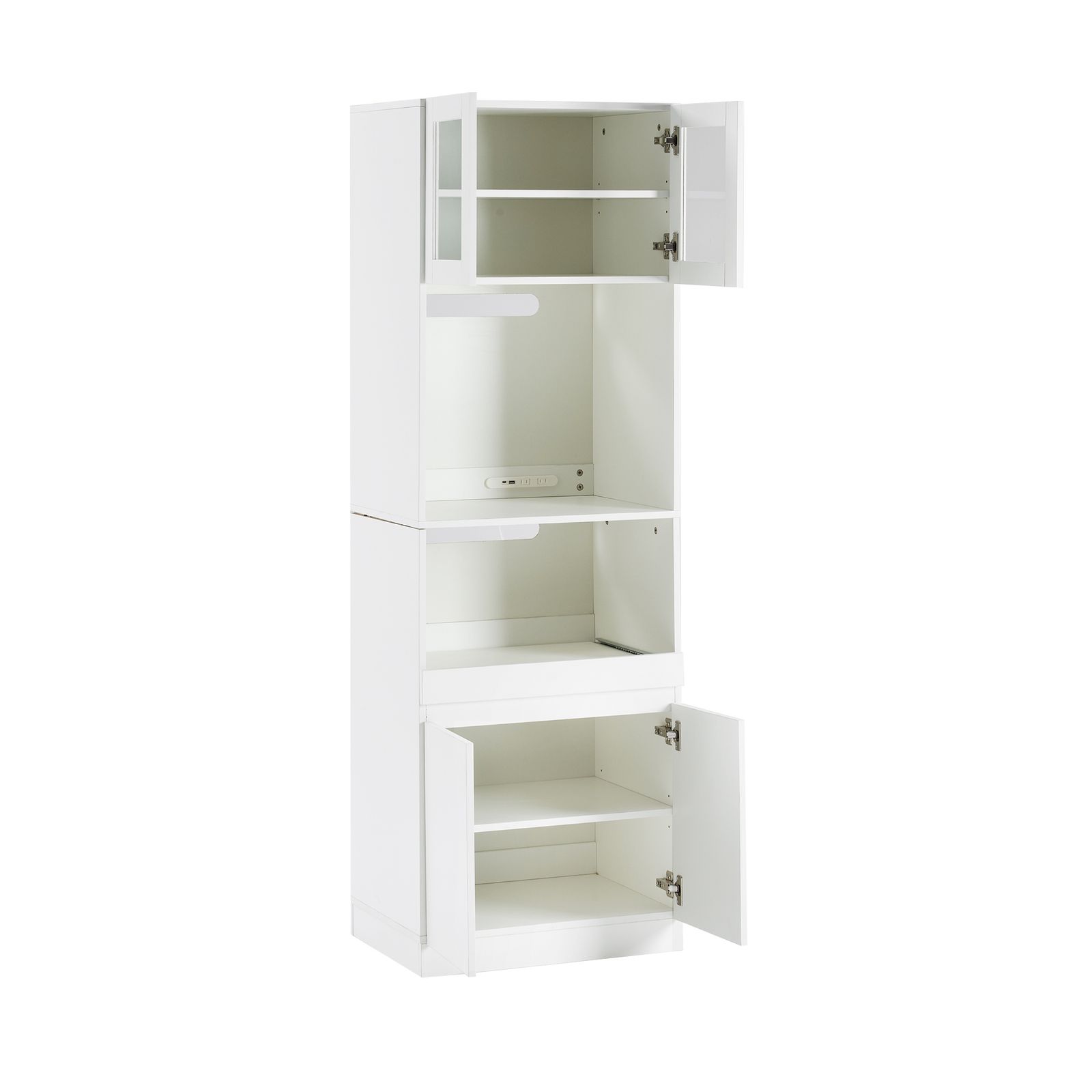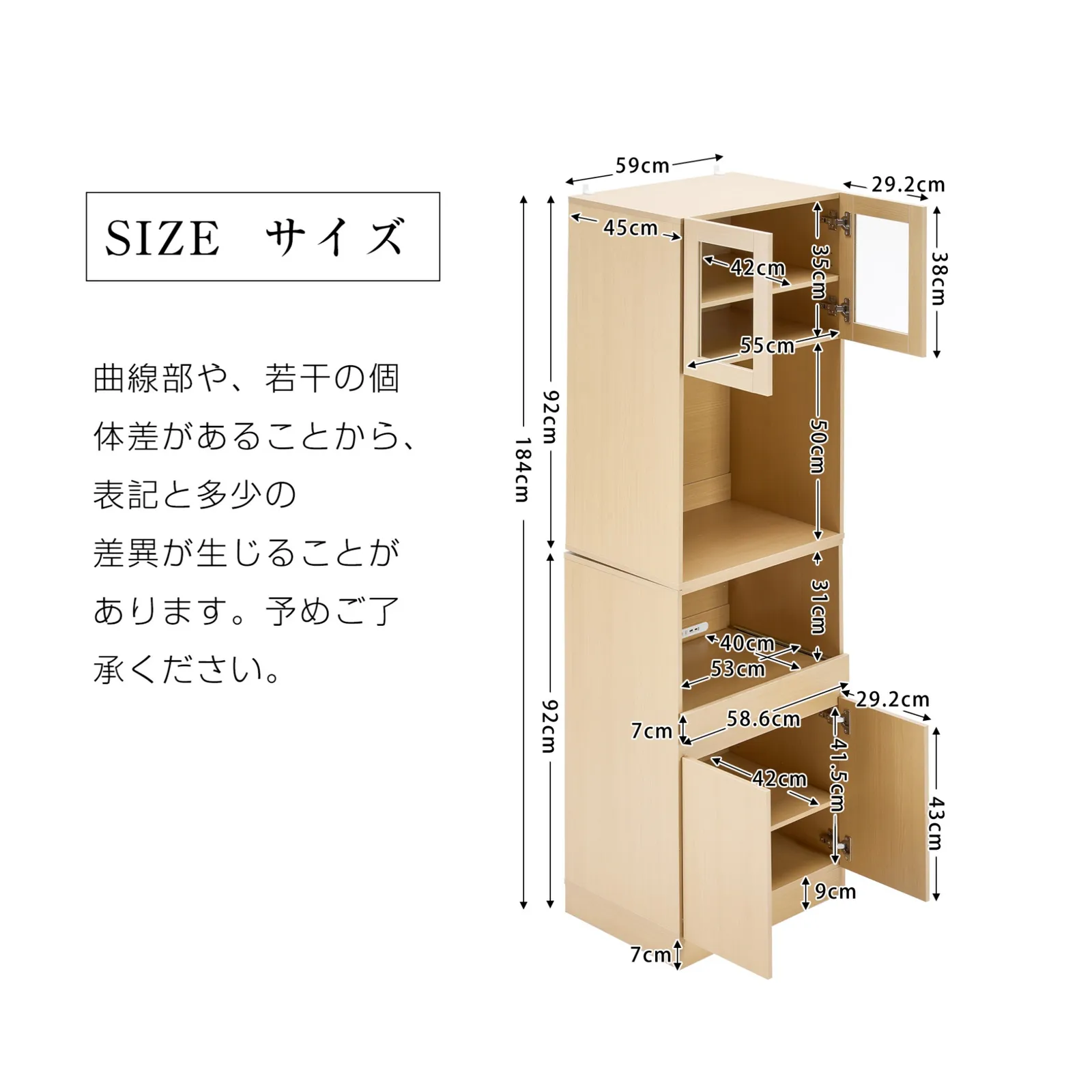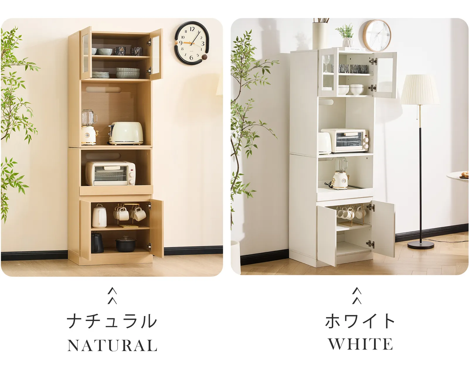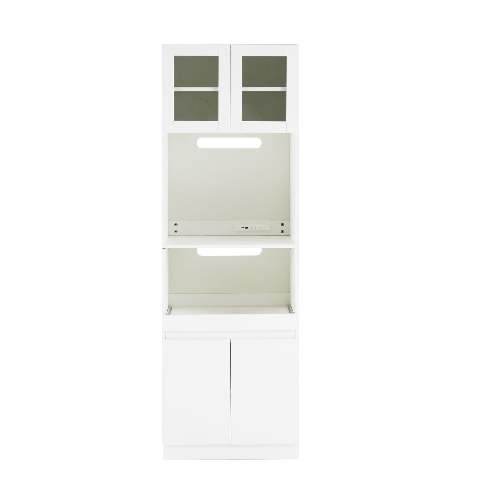 食器棚 キッチンボード レンジボード レンジ台 キッチン収納 家電収納 キャビネット オープン棚 強化ガラス扉 木目調 スリム 幅59cm 可動棚 スライド棚 2口コンセント USBポート ACポート 通気孔 一人暮らし 省スペース 調理家
