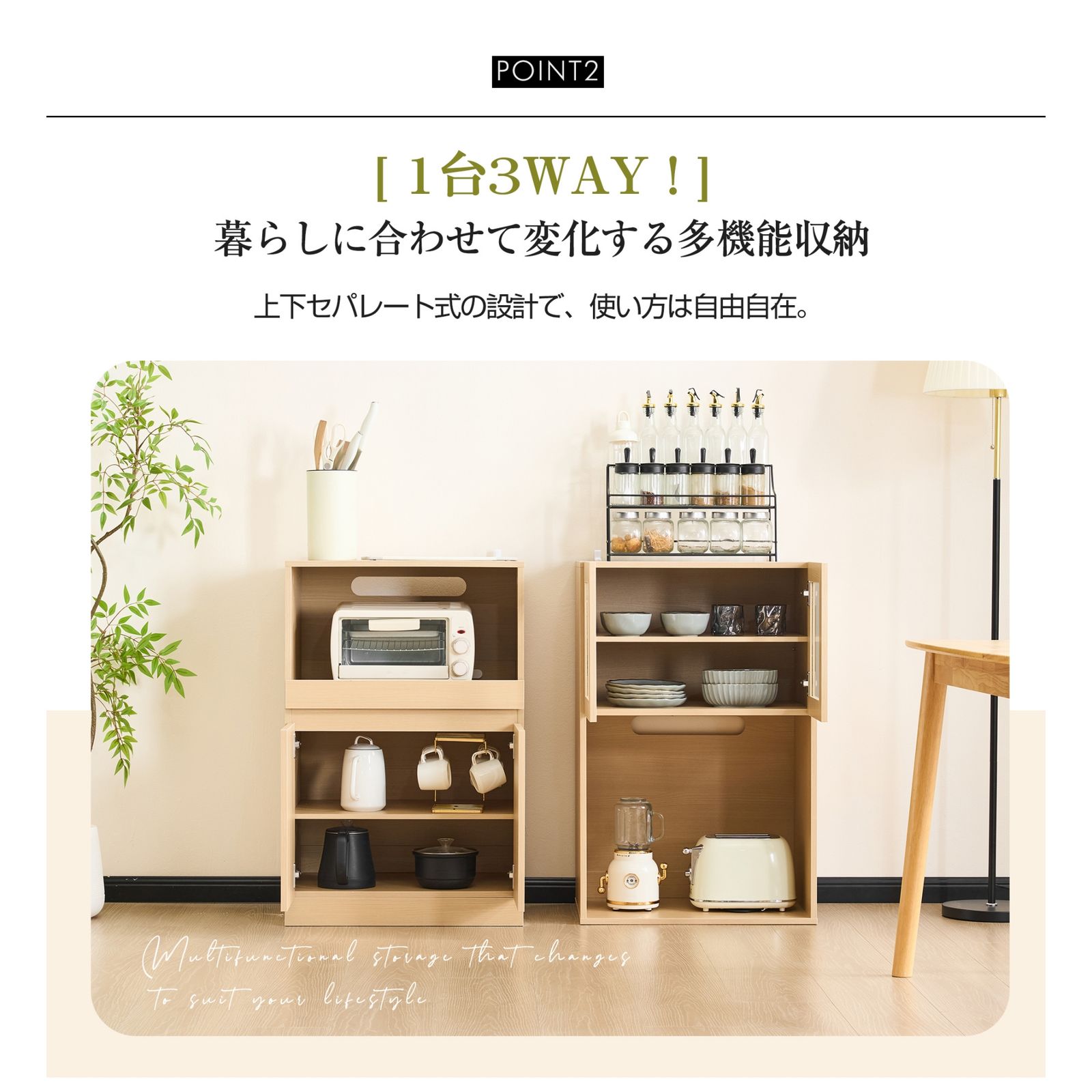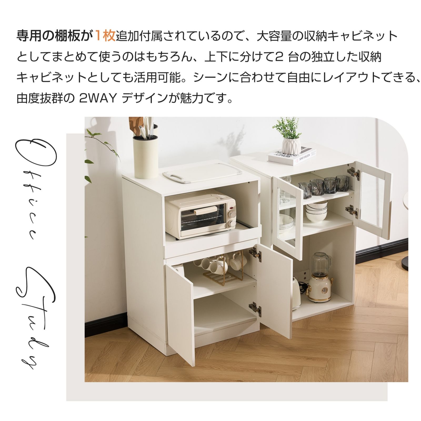 【上下分割できる2WAY仕様】 上下セパレート式なので、1台の大容量収納としてはもちろん、分けて2台の収納キャビネットとして使うことも可能。空間や用途に合わせて柔軟にレイアウトできます。